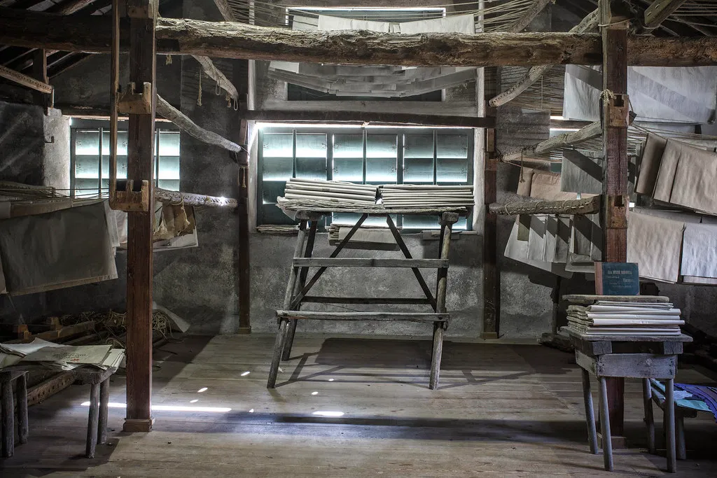 Quest'ultimo situato sulla sponda sinistra del torrente Acquasanta e a valle del Santuario possiede un essiccatoio al piano del tetto, munito di finestre a persiane orientabili, dove le mazzette dei fogli di carta sono appese ad asciugare; una tecnica che l'opificio manterr? eccezionalmente inalterata sino al 1985, anno in cui cessa l'attivit?, malgrado sia ormai consolidato l'uso di macchinari provvisti di gruppi asciuganti.
