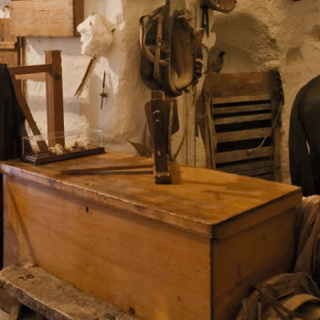 Le peculiarità della casa sono: il focolare con l’area adibita a cucina, al centro della casa un piccolo tavolo con l’unico grande piatto dal quale tutti mangiavano, il letto composto da due cavalletti in ferro, sui quali poggiavano delle assi di legno e il giaciglio costituito da un materasso ripieno di foglie di granturco; di fronte al letto, la stalla con la mangiatoia che ospitava il mulo; oltre un piccolo tramezzo, trovava collocazione l’altra stalla con la mangiatoia, la cava tufacea dalla quale si ricavavano i blocchi di tufo ed una cavità circolare usata come letamaio o come deposito per la paglia. Di particolare interesse è il sistema di raccolta delle acque piovane dall'esterno; ben visibili sono la canalizzazione e la cisterna.