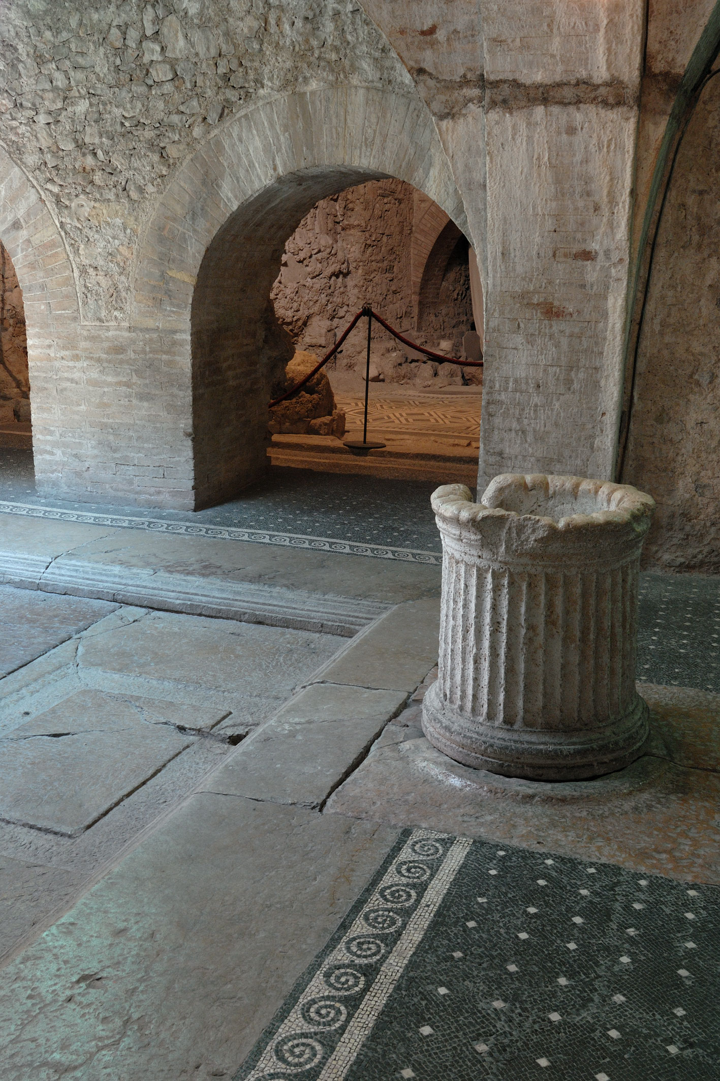 I resti della casa romana sono visitabili nei locali sotto il Municipio di Spoleto.