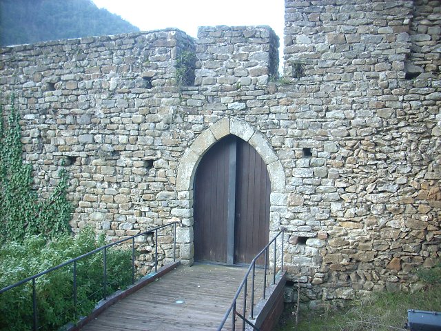 Menzionato nelle fonti sin dal 1287, il Castello risale all'insediamento dei Doria a Isolabona verso la fine del XIII secolo. Come molti castelli è situato in posizione strategica ed elevata su un poggio a settentrione che serviva da controllo della via per Apricale. In origine adibito esclusivamente a fortezza (1330), con i secoli a venire acquisì funzioni residenziali, attestate dalle nuove aperture praticate nelle cortine murarie del fronte sud. Appartenne al feudo Doria, con la breve interruzione di un periodo, intorno agli anni Venti del Cinquecento, in cui fu appannaggio della famiglia Grimaldi di Monaco. Gravemente danneggiato e in molte parti distrutto dal terremoto che scosse la riviera di ponente nel 1887, le sue rovine sono state oggetto di restauro e consolidamento nel 1989. Oggi il castello si presenta con un impianto a base esagonale, sul quale si innesta a monte un elevato mastio a pianta quadrata, costruito in arenaria locale. La parete nord presenta un'apertura ad arco acuto sormontata da resti di merlature e ancora archiacuto è il portale d'ingresso al castello. I restauri hanno comportato il parziale rifacimento della torre e il miglioramento dell'accesso alla fortificazione mediante la costruzione di una passerella. Il proposito di utilizzare a fini culturali il castello ha condotto alla formazione sullo spazio antistante di una cavea in legno resa suggestiva dallo sfondo scenografico del castello.