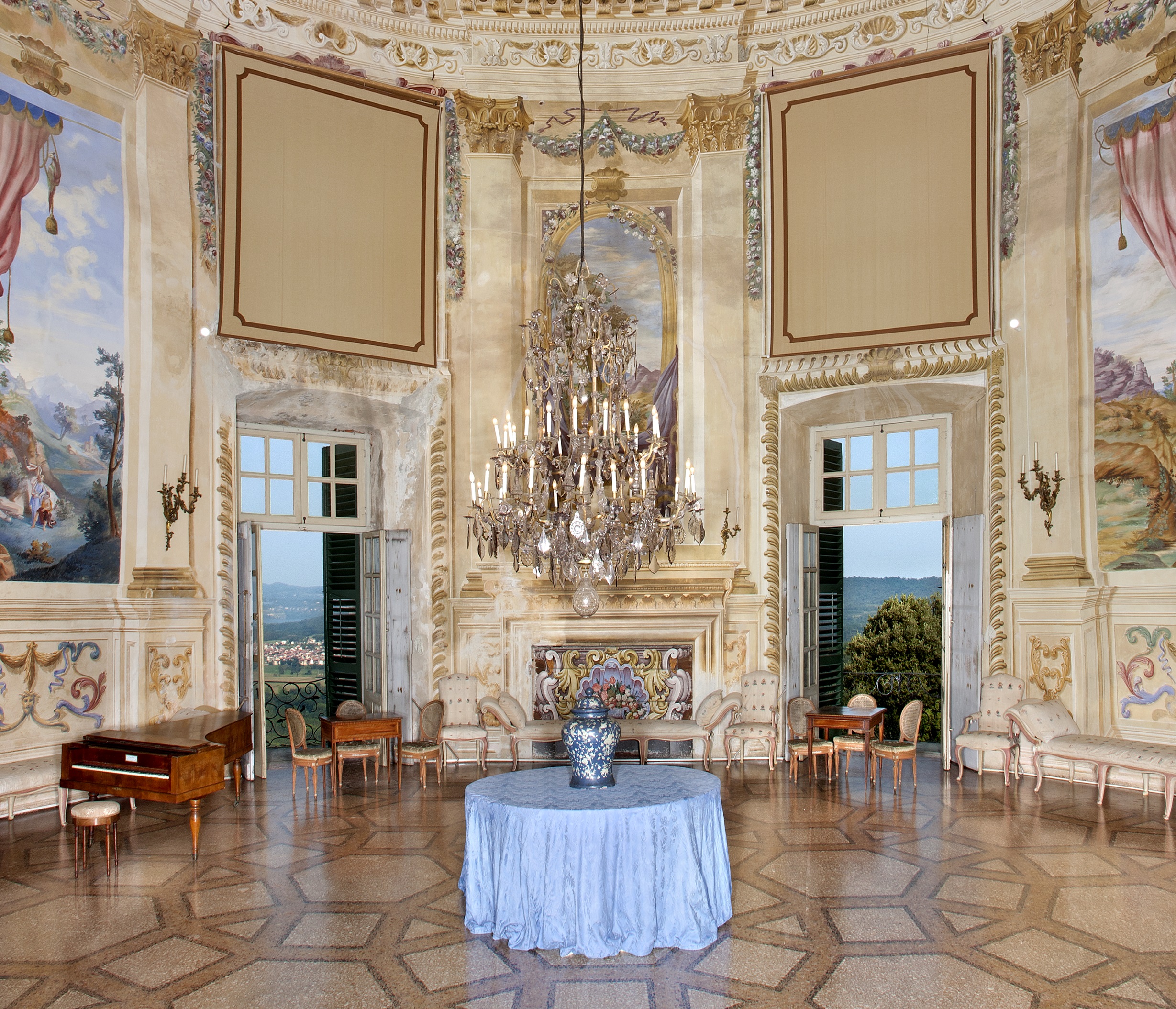 campagna. All'interno ampi saloni riccamente decorati con quadri e arredi d'epoca. Intorno al castello è il grande parco all'inglese, dove si trova il Museo delle carrozze.