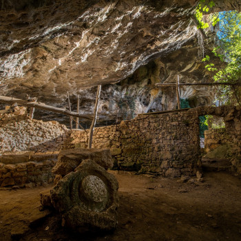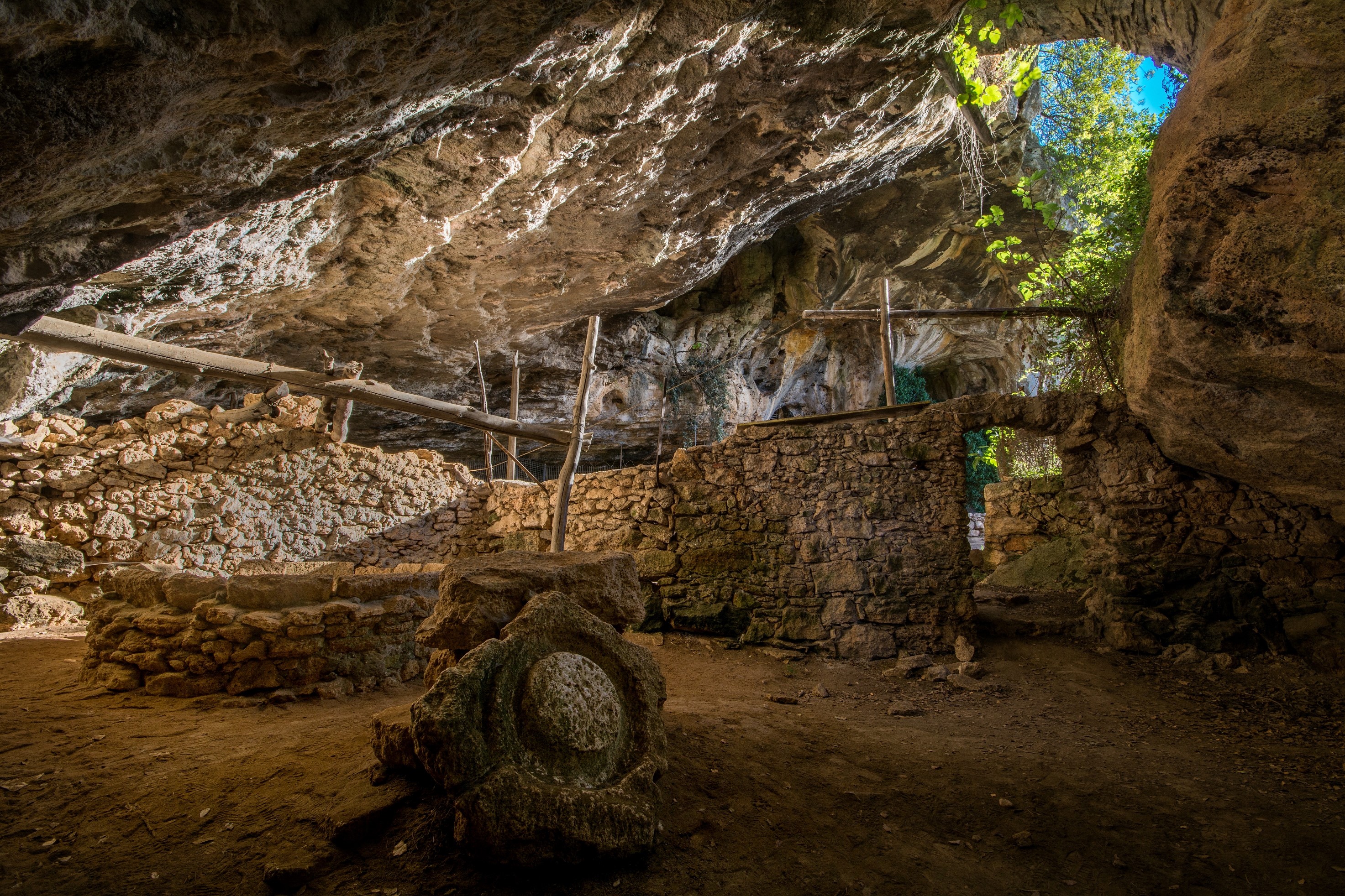 Lo spazio interno è in parte delimitato da muretti in pietra, che definiscono alcuni ambienti nei quali si conservano ancora strutture e attrezzi agricoli. La grotta fu, infatti, utilizzata, fino agli anni Sessanta del secolo scorso, come ovile, fienile, rimessa e frantoio. Come conseguenza di tali attività, la caverna venne svuotata del terreno presente all’interno per utilizzarlo nella realizzazione dei terrazzi antistanti. Questa pratica, testimoniata in diverse altre località della Liguria nel corso dell’Ottocento, comportò la distruzione dei livelli superiori del deposito archeologico fino ad esporre i livelli argillosi non adatti alla coltivazione. Nell’estremità orientale della caverna è ancora visibile l’area interessata dagli scavi archeologici, delimitata da una recinzione.