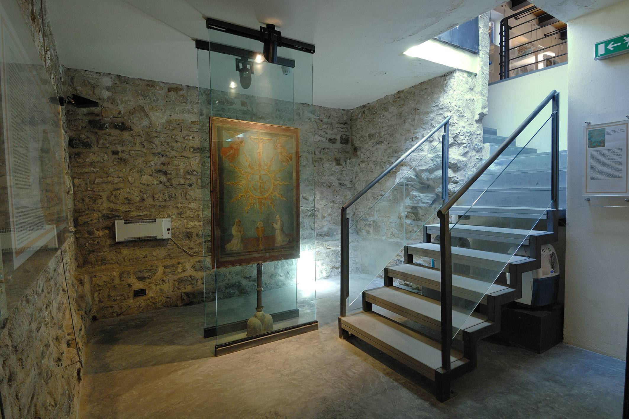 Gli spazi interni dell’edificio sono divisi per nuclei tematici; al piano seminterrato sono esposti alcuni gonfaloni processionali che testimoniano la fervente religiosità degli abitanti dell’isola nella quale, un tempo, erano presenti numerose confraternite.