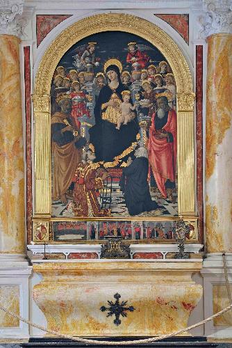 La Chiesa di Santa Maria delle Nevi fu fatta costruire tra il 1471 e il 1477 per volere di Giovanni Cinughi, primo vescovo di Pienza e membro di una delle più antiche famiglie nobiliari senesi, come cappella gentilizia, legata al culto dei familiari del vescovo. Giovanni Cinughi, che era un amico fraterno di Papa Pio II, volle questo spazio sacro isolato, al di fuori della strutture del suo palazzo che si trovava nelle vicinanze, nel cuore della città di Siena, lungo l’antico tracciato della via Francigena. Il vescovo impegnò tutti i suoi beni per la realizzazione di questo edificio che non vide concluso. La chiesa è dedicata alla Madonna delle Nevi, la Vergine che aveva annunciato la miracolosa nevicata del 5 di agosto dell’anno 352 d.C., suggerendo a Papa Liberio il luogo in cui edificare la basilica romana di Santa Maria Maggiore. La costruzione di questa chiesa a Siena contribuì a diffondere in città sia tra le famiglie aristocratiche sia tra il popolo il culto per la Madonna delle Nevi. Della chiesa, che si presenta ancora nelle forme originali, con i suoi caratteri rinascimentali a forma di tempietto, non conosciamo il nome dell’architetto che la realizzò, ma si ipotizza un’importante figura presente a Siena dopo il 1450, forse Lorenzo di Pietro detto il Vecchietta, che fu anche pittore e scultore, allievo del grande Francesco di Giorgio. Gli stucchi ai lati dell’altare con San Giuseppe e Santa Maria Maddalena de’ Pazzi sono attribuiti allo scultore senese Giuseppe Maria Mazzuoli (1727-1781).