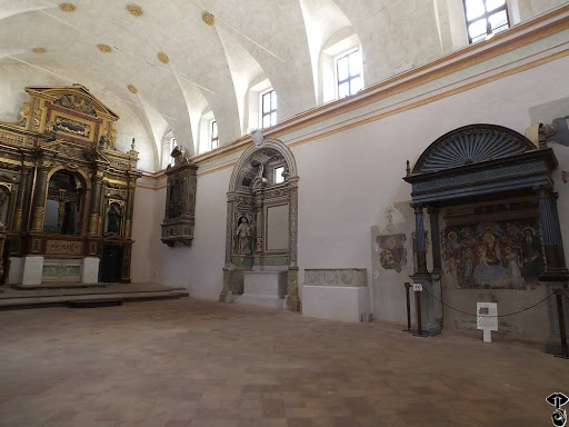 Antica costruzione in pietra calcarea della fine del XIII Sec. Facciata con portale ogivale trilobo, asimmetrico rispetto all'asse della fronte. Arcate lungo il fianco. All'interno affresco di O. Nelli (Madonna del Belvedere, 1413) e altri dipinti murali.