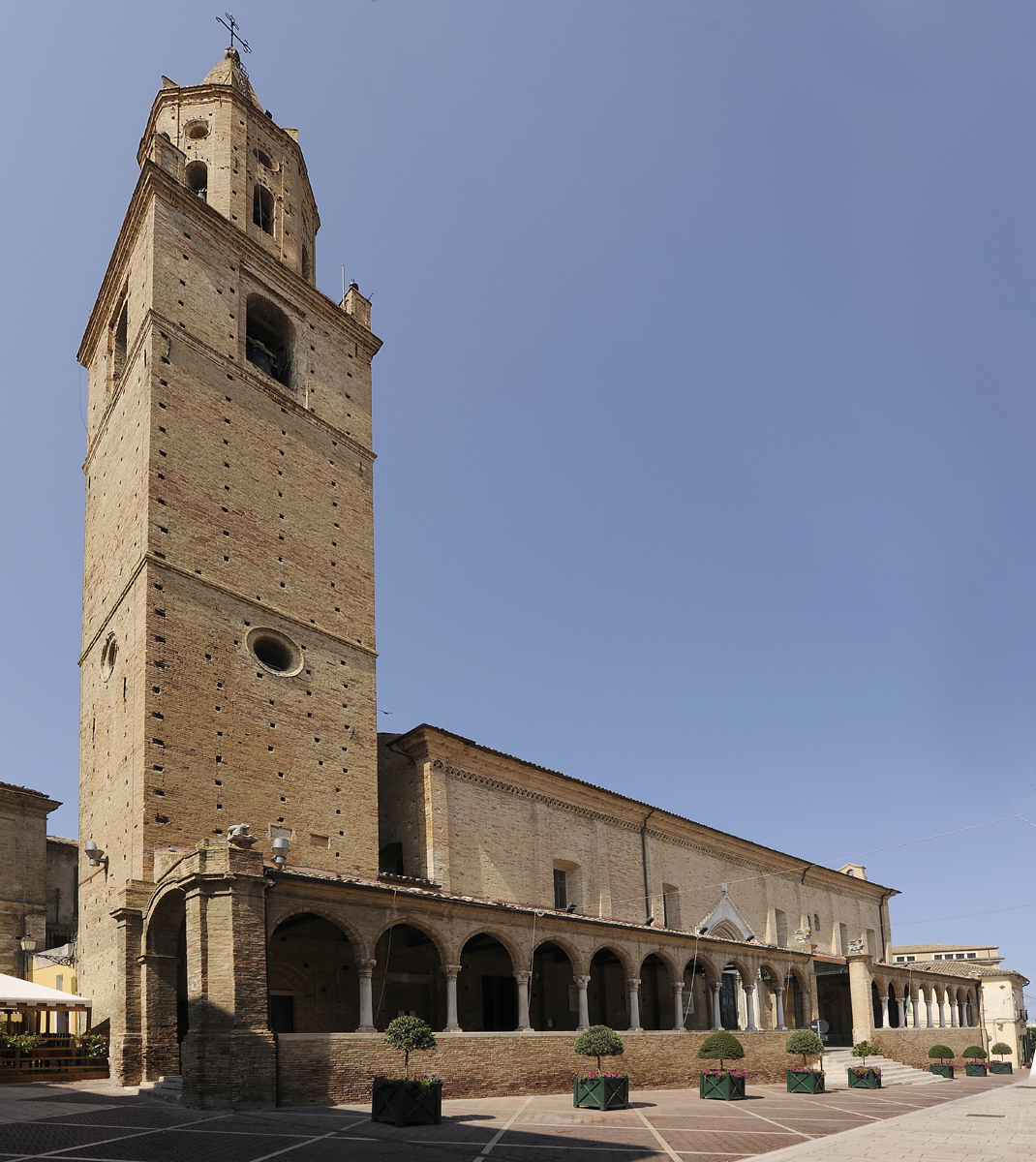 La chiesa madre della città, col titolo di collegiata dal 1353, sorge al posto dell'antica del IX secolo, edificata in forme due-trecentesche. La facciata principale è occupata dalla grande torre campanaria della tipologia cuspidata diffusa nel Quattrocento nell'Abruzzo aprutino da Antonio da Lodi, mentre il fianco destro, percorso da un lungo porticato del XV secolo con arcate ogivali rette da colonnine, si affaccia arioso sulla piazza. Nel tratto di porticato che si interrompe, o meglio che venne demolito nel Settecento, fa bella mostra il portale del 1326 di scuola atriana con l'immagine di San Michele arcangelo nella lunetta e resti di un ambone del IX secolo. L'interno, a due navate, conserva pregevoli altari settecenteschi in legno e stucco. Interessante è il sarcofago del vescovo di Penne Amico di Buonamicizia, morto nel 1467. La tomba, posta in alto, è retta da mensole con angeli che sostengono la cassa con l'arme del defunto e la figura del vescovo giacente.