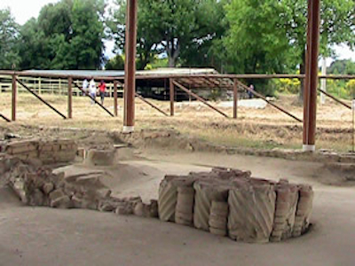 Il Complesso Termale Etrusco - Romano in località Campo Muri risale al III secolo avanti Cristo, e si trova ad ovest di Rapolano a valle delle attuali Terme di San Giovanni. Fu individuato negli anni '70 con l'inizio della attività estrattiva. Si tratta di un insediamento archeologico pluristratificato che presenta un'estenzione superiore a mq.8000, lambito sui lati sud ed est da due fronti di una cava di travertino che era ancora in attività. L'area è stata oggetto di alcune campagne di scavo che hanno consentito di ricostruire buona parte della planimetria dell'edificio antico e le principali fasi insediative del sito, che arrivano fino alla fine del IV secolo dopo Cristo. Lo stato attuale delle ricerche le presenze archeoloche più antiche individuate nel sito di Campo Muri sembrano attestare l'esistenza di un culto legato alla presenza di acque termali cui doveva venire attribuita valenza sacra oltre che salutare e terapeutica, come testimonia la presenza di un deposito votivo individuato nella Buca delle Fate, area boschiva presente attualmente nel settore nord-ovest del complesso archeologico e probabilmente sede della sorgente termale in età antica. Lungo il lato sud della Buca delle Fate, gli scavi hanno portato alla luce un'ampia piscina termale con gradinate perimetrali in grossi blocchi parallelepipedi di travertino e piano pavimentale costituito da lastre di travertino regolare sovrapposte.