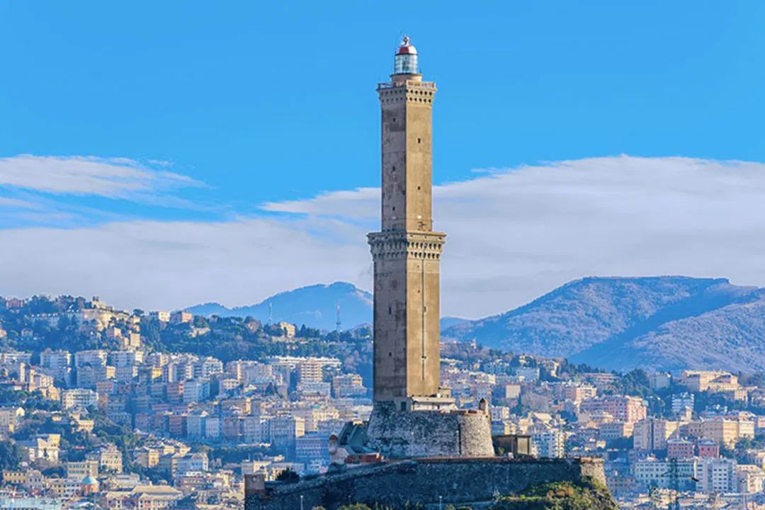 Nel 1326 divenne Lanterna grazie all'utilizzo delle lampade ad olio d'oliva a scapito dei fuochi e, dopo essere stata adibita a prigione nel XIV sec., fu inglobata nella roccaforte francese della Briglia e dovette subire la distruzione della parte superiore durante l'espugnazione della fortezza da parte dei genovesi; la ricostruzione del manufatto ad opera di un gruppo di magistri antelami guidati da Martino da Rosio, fu iniziata nel 1543 grazie a un finanziamento del Banco di S. Giorgio e l'anno successivo la Lanterna assunse il suo assetto definitivo.