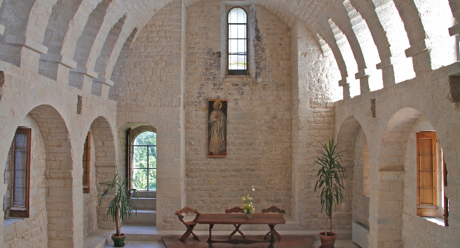 Il Monastero di Fonte Avellana è situato alle pendici boscose del monte Catria (1701 m.) a 700 metri sul livello del mare. Le sue origini si collocano alla fine del X secolo, intorno al 980, quando alcuni eremiti scelsero di costruire le prime celle di un eremo che nel corso dei secoli diventerà l'attuale monastero. La spiritualità di questi eremiti fu influenzata da San Romualdo di Ravenna, padre della Congregazione benedettina camaldolese. Egli visse e operò fra il X e l'XI secolo in zone vicinissime a Fonte Avellana, quali Sitria, il monte Petrano, e San Vincenzo al Furlo.