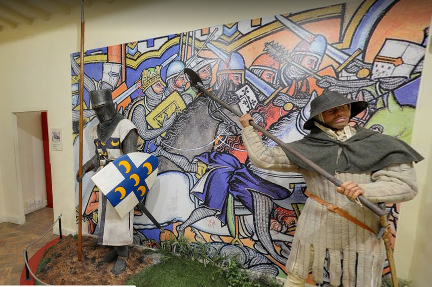 Lo scopo dell'esposizione è sostenzialmente quello di ripercorrere la storia militare di Monteriggioni attraverso armi armature e anche tecniche di guerra che hanno caratterizzato i secoli in cui il castello è stato avanposto della Repubbluca Senese (inizo XIII - metà XVIsecolo). Ogni sala è infatti dedicata a un particolare momento/evento che ha caraterizzato la storia del borgo turrito, all'interno del quale sono contestualizzate le armature e i diorami esposti.