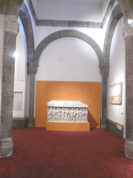 Nel Museo è possibile ammirare reperti rinvenuti nella necropoli soggiacente alla Concattedrale negli anni 1875 – 78 e conservati dapprima nella sala Capitolare e dal 1964 al 2007 presso l’Antiquarium Statale. La loro datazione va dal II al VI secolo d.C.. Significativa la colonna miliare del tempo di Adriano sita sul percorso Nuceria, Stabiae, Surrentum che testimonia, con data certa, la rinascita di Stabia (“Stabiasque renatas” dice il poeta Stazio) dopo l’eruzione del 79 d.C. Sono interessanti anche le lapidi funerarie ed alcuni sarcofagi tra i quali quello di Giulio Longino con il bassorilievo di “Apollo, Minerva e le Muse” risalente alla fine del III secolo d.C. e quello di Bettia Felicita. Il sarcofago di Cornelia Ferocia resta nella Concattedrale sotto l’altare di San Catello - mentre solo la copertura è nel Museo: con le raffigurazioni del “Pastore” e di una matrona con rotolo si presta ad una lettura sia pagana che cristiana.
