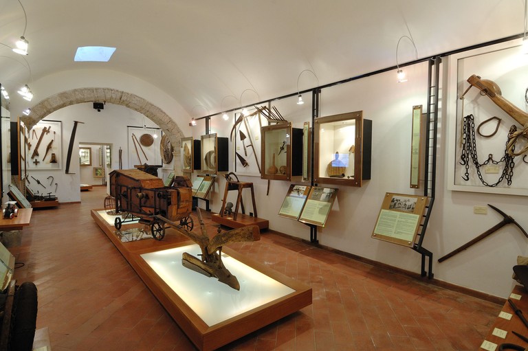 Un’altra sezione del museo documenta la civiltà contadina attraverso oggetti e attrezzi agricoli appartenuti a famiglie locali tra la fine del XIX secolo e il dopoguerra e legati alla produzione del vino e dell’olio, nonché alla lavorazione della canapa e del frumento.