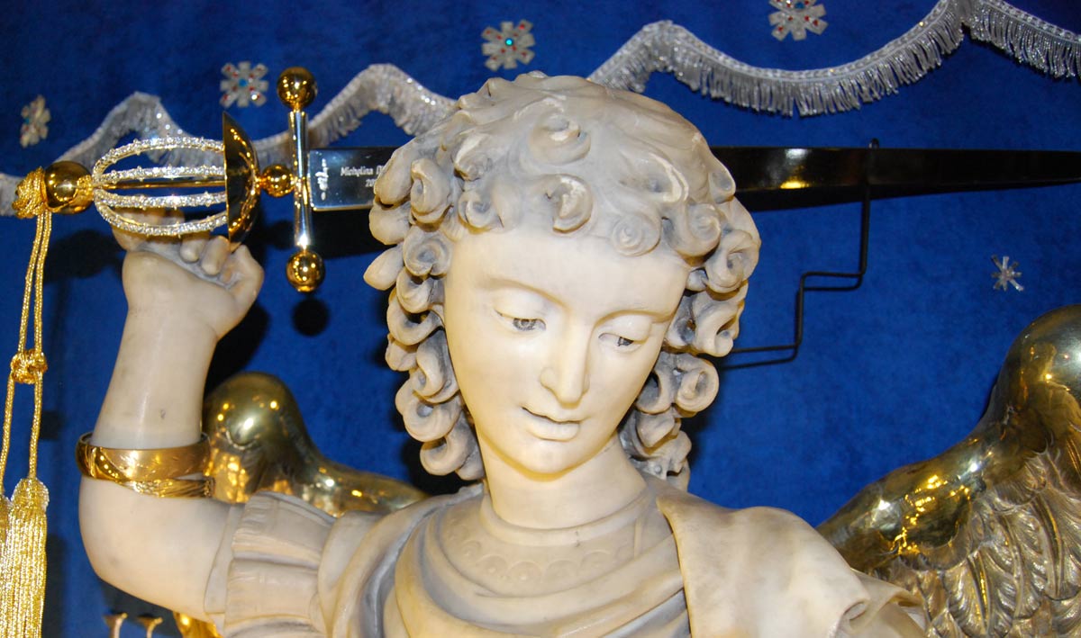 "Il Museo lapidario raccoglie materiali lapidei rinvenuti sia all’interno del santuario che in altri siti dell’area gravitante attorno al santuario. Il nucleo più consistente di materiali e l’avvio del lapidario stesso sono collegati in prima istanza con gli scavi effettuati alla metà degli anni Cinquanta del secolo scorso da mons. Nicola Quitadamo. Questi, condotti tra il 1949 e il 1955, hanno portato alla luce le strutture relative alle fasi più antiche del santuario. Gli interventi ebbero come fine immediato il restauro delle evidenze di età svevo-angioina e la creazione di strutture funzionali alla frequentazione del santuario. Gli scavi interessarono sia gli spazi all’interno del santuario moderno sia le aree immediatamente circostanti; all’interno, la scoperta di alcuni ambienti sottostanti il pavimento della canonica portarono al rinvenimento della cosiddetta “galleria longobarda”, attuale sede del Museo lapidario, che risultò riutilizzata come fossa comune. La facciata originaria della “galleria” venne alla luce solo nel 1974 quando fu abbattuto il muro che la obliterava. Per quanto riguarda il Museo lapidario, dagli scavi degli anni Cinquanta emerse un patrimonio consistente di materiali di epoche diverse e di tipologia diversa. Il Museo devozionale nasce nel 1989."