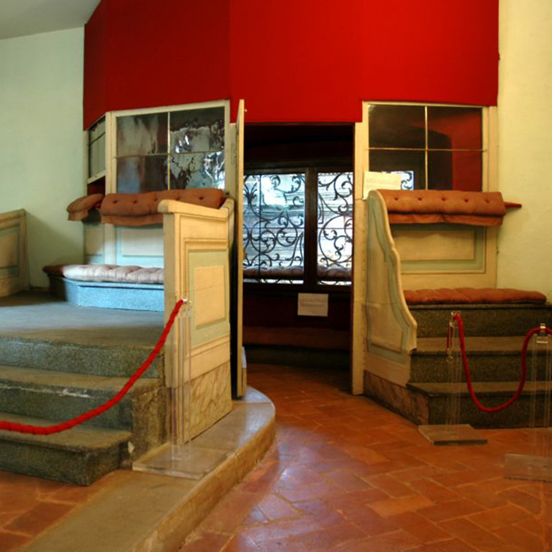 Su tutto l’edificio fu estesa la clausura riservata al convento, in modo da permettere alle monache di partecipare alla vita della principessa, ma il “corridore” restò uno spazio riservato sempre chiuso con una chiave della quale esistevano solo due copie: una di Maria Maddalena e l’altra in custodia alla Madre Superiora. Al termine del “dilettevol Passeggio” in origine decorato con immagini sacre, per aiutare la principessa “nella sua grata solitudine” a rivolgere in alto suoi pensieri e a provare “in Terra qualche parte della gioia del Cielo”, si apre il “Coretto” una piccola stanza arredata con due inginocchiatoi sui gradini e uno sulla finestra con un’ampia grata che si affaccia sulla cappella della Basilica dove la principessa poteva assistere non vista alla messa.