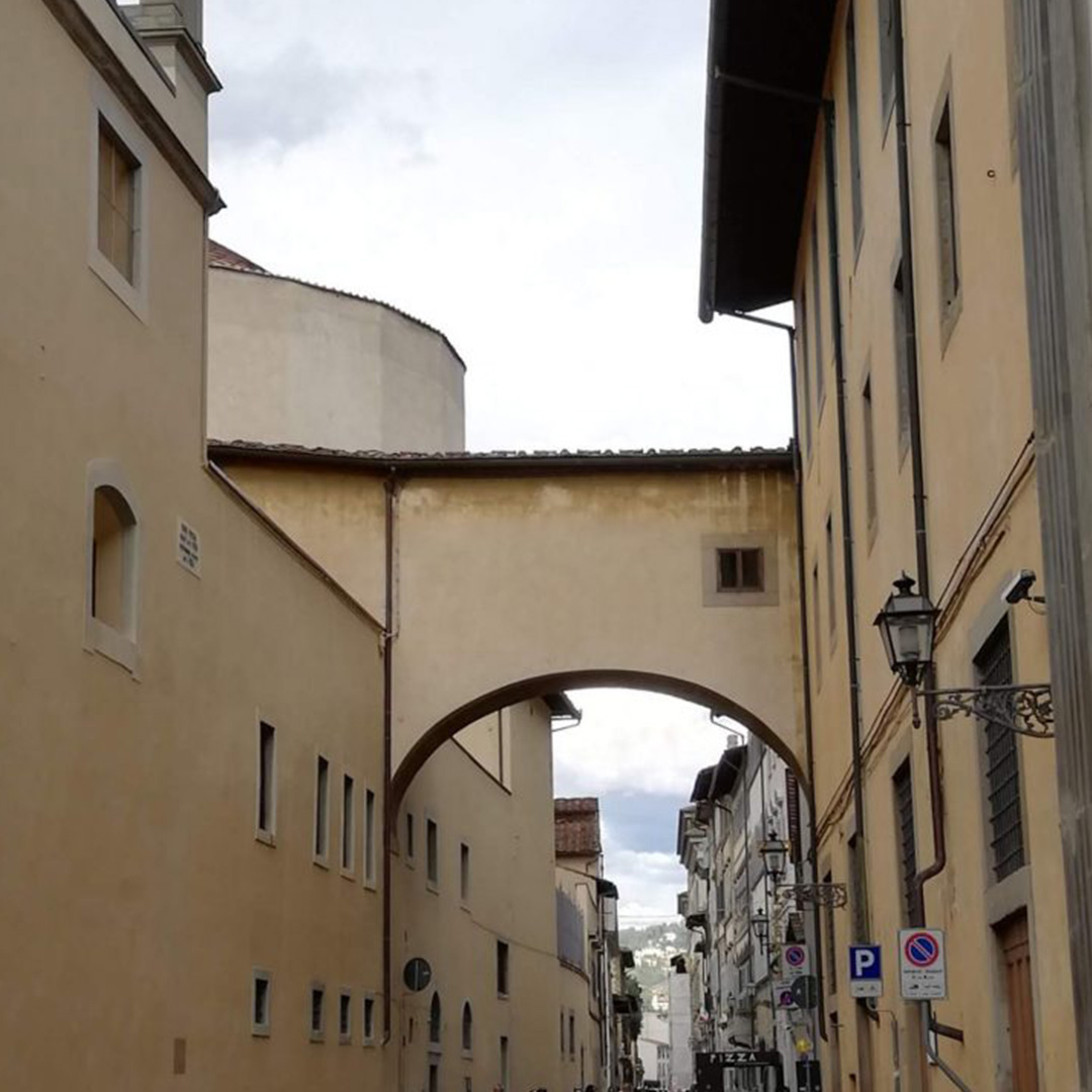 Il Coretto di Maria Maddalena de’ Medici è un luogo affascinante e ricco di storia che collega il Palazzo della Crocetta, oggi sede le Museo archeologico Nazionale di Firenze, alla Basilica della Santissima Annunziata. Fu costruito fra il 1619 e il 1620 per la principessa Maria Maddalena, ottava figlia di Ferdinando I e Cristina di Lorena, sorella del granduca Cosimo II che avviò una “bellissima fabbrica” adiacente al Monastero per permettere a Maria Maddalena, ‘malcomposta nelle membra’, di condurre una vita all’altezza del suo rango, protetta dagli sguardi del mondo esterno. L’architetto Giulio Parigi realizzò in soli sei mesi su 125 metri sopraelevati una lunga “Galleria, che partendo da gl’interni appartamenti di essa, distendendosi sopra un ameno Giardino, viene a finire nel riverito Tempio della Santissima Nunziata”, come riferisce il poeta di corte Andrea Salvadori.