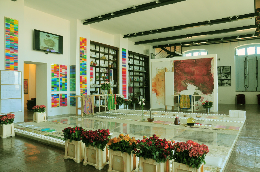 Al numero 29 di Via Pontecorvo, a due passi da piazza Dante, il Museo Nitsch si rende visibile in fondo alla stretta strada di ingresso, attraverso il segno forte di una facciata sobria e composta di fine Ottocento. Lo spazio, già nato per ospitare un impianto per la produzione di energia elettrica, mostra un’ampia quadratura e un corpo architettonico da osservare con l’angolazione poetica di chi ha trasformato uno stabile in disuso, in un sogno realizzato, in una deflagrazione creativa: il Museo Hermann Nitsch Archivio/ Laboratorio per le Arti Contemporanee, dedicato all’artista viennese e alla sperimentazione visuale nata intorno agli anni Sessanta. Una sede per le arti a Napoli, ma soprattutto un punto di incontro dove la continuità di memoria del passato alimenta il presente inteso come evocabile consistenza memoriale, come possibile antidoto, in termini di dichiarazione di frattura, rispetto alle insinuazioni di insidiosi condizionamenti consumistici.