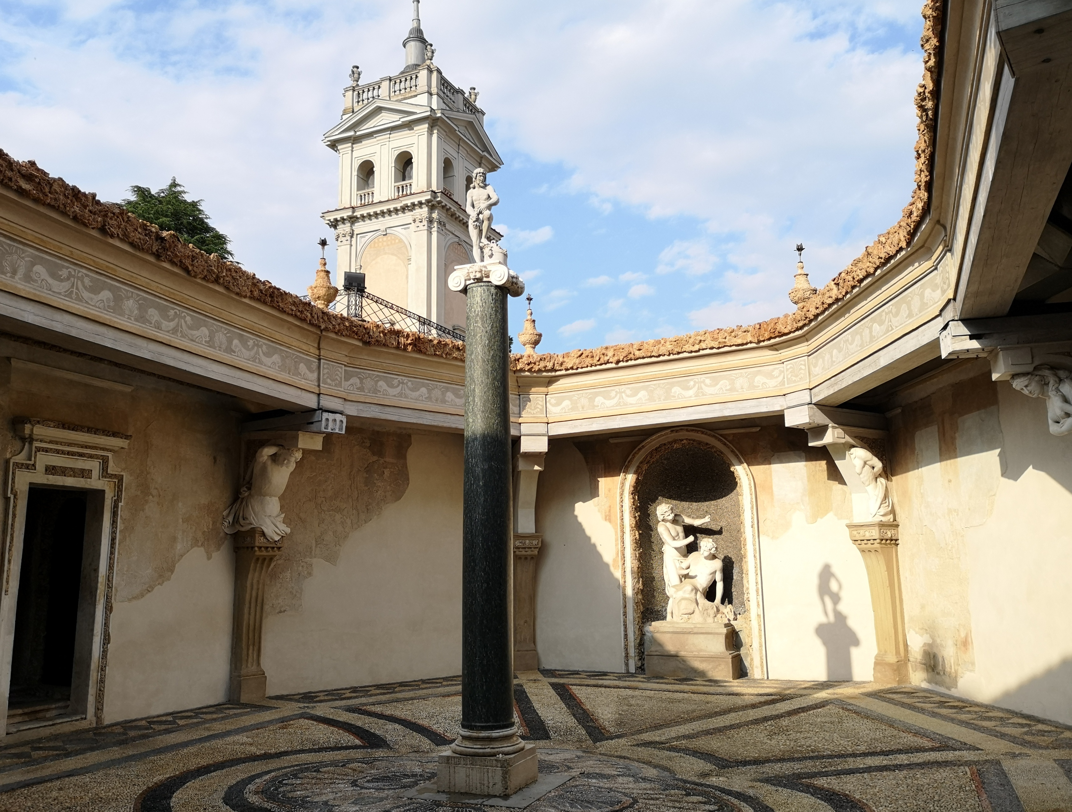 Ma la vera sorpresa è il Ninfeo, luogo di frescura di grande fascino e suggestione che, proprio per la ricchezza di decorazioni e di spettacoli idraulici, è considerato l’esempio più importante e significativo dell’Italia settentrionale. L’edificio, realizzato tra il 1585 e il 1589, è costituito da stanze completamente decorate a mosaico di ciottoli bianchi e neri e ciottoli dipinti a tempera, una vera e propria unicità nella storia delle realizzazioni a mosaico a noi note. In alcuni di questi ambienti si possono ammirare spettacolari giochi e scherzi d’acqua, completamente ripristinati.