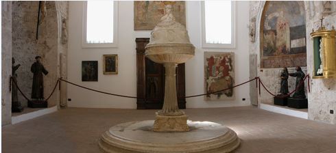 Di qui, attraversato il chiostrino che conduce al duecentesco Palazzo dei Papi, si accede alla pinacoteca, allestita nella sala delle udienze della curia pontificia, vanto legittimo dell’architetto Andrea magister per le sue armoniose proporzioni e per la vastità degli spazi.
