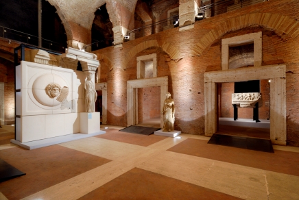 I Mercati di Traiano sono un complesso archeologico dalle caratteristiche assolutamente uniche a Roma e possiamo dire nel mondo; rappresentano infatti un “quartiere” che ha vissuto l’evoluzione della città dall’età imperiale ai giorni nostri, costantemente riutilizzato e trasformato: da centro amministrativo strategico dei Fori imperiali, a residenza nobiliare, a fortezza militare, a sede prestigiosa di convento, a caserma…in un continuo divenire, che si avverte nelle trasformazioni architettoniche e nei segni delle diverse “mani” che nelle differenti epoche hanno riadattato il complesso alle varie funzioni, per giungere fino a noi e avviarsi ad una nuova “stagione” di vita. . Proprio sfruttando questa ambivalenza di contenitore d’eccellenza della propria storia e della storia della città, abbiamo progettato l’esposizione dedicata ai Fori Imperiali nei Mercati di Traiano, che ne erano parte integrante, non come “centro commerciale” (secondo la letteratura archeologica passata), ma quale insieme di edifici destinati ad amministrare attività e funzionamento del più grande e famoso dei Fori, quello voluto dall’imperatore Traiano. Non vogliamo “esibire” i singoli frammenti (pur stupendi) di un passato splendore decorativo, ma ricomporre materialmente la decorazione architettonico-scultorea, anche affrontando opere molto impegnative dal punto di vista materiale. Ma non basta: è assolutamente indispensabile far percepire al visitatore la complessità del cantiere antico, il suo sistema di lavoro, la sua “tecnologia”, come pure è fondamentale riproporre l’ambiente reale, ovvero le attività che si svolgevano nei Fori, le persone che li frequentavano, in altre parole riprodurre la vita reale negli spazi reali. Per ottenere questi obiettivi, rispettando il rigore scientifico delle ricostruzioni, proponiamo di utilizzare le migliori tecnologie oggi a disposizione: dalla grafica alla multimedialità, non volendo utilizzare solo un metodo di espressione, ma scegliendo quello più duttile a seconda delle esigenze di comunicazione: i prodotti multimediali derivanti dal sistema comunicativo, la pubblicazione attraverso siti web, CD-ROM e DVD, ormai fanno stabilmente parte della produzione in ambito museale e culturale in genere e affiancano la tradizionale produzione cartacea (guide in varie lingue, cataloghi, ecc.), rendendo più ampia la circolazione dell’informazione ai vari livelli.