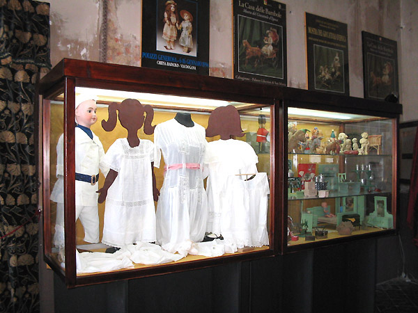 Collocate in apposite vetrine si possono ammirare numerose bambole di porcellana, celluloide, cera e cartapesta.