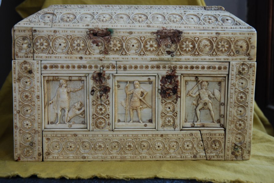 Nelle vetrine sono esposti oggetti in metallo, porcellana, avorio e ceramica, di epoche e botteghe diverse.