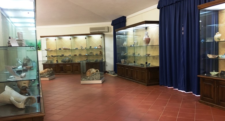 L'esposizione, provvisoria, presenta reperti rinvenuti nell'area del centro abitato di San Teodoro, nelle sue acque e in quelle più vicine, interessate nell'antichità da intensi movimenti di traffico commerciale. È anche presente un tesoretto monetale di epoca punica, di ignota provenienza. Il più antico reperto è un'anfora greco-italica, da porre in relazione con la città punica di Olbia, maggior porto della Sardegna settentrionale a partire dal 350 a.C. Le altre anfore mostrano l'evoluzione di questo contenitore fino alla forma classica vinaria italica, testimoniando la continuità e l'intensificarsi dei traffici.