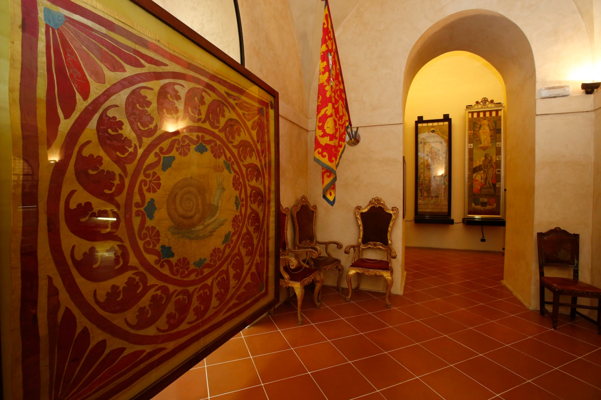Il museo è costituito dalla sala degli arredi sacri dove sono raccolti oggetti liturgici dal XV secolo fino al XVII secolo e dalla Sala delle Vittorie dove sono esposti i palii vinti, i masgalani, gli oggetti relativi al palio e i costumi non più utilizzati eseguiti nel 1878, nel 1904, nel 1925 e 1957.