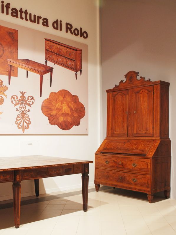 Il museo, allestito in alcune sale della residenza municipale, nasce nel 1994 con lo scopo di documentare la tecnica artistica della tarsia nell'ambito rolese, affermatasi a partire dalla seconda metà del Settecento, sia pure innestata su esperienze anteriori. Il primo esemplare documentato risulta, infatti, il pulpito della chiesa di Rolo, eseguito nel 1752 da Giuseppe Preti. Caratterizza questa produzione una decorazione a sottili racemi di legno chiaro, a volte ornati di bacche o piccoli fiori, e vedute urbane di ispirazione rinascimentale. Nelle sale del museo, la storia e la fortuna della tarsia rolese sono illustrate in una serie di pannelli didattici che affiancano gli oltre trenta esemplari presenti, tavoli, cassettoni, armadi ed altri mobili. Per presentare le diverse tecniche costruttive sono esposti e descritti gli attrezzi del mestiere. Completa la raccolta una piccola sezione con diversi disegni e incisioni. Il museo si configura anche come centro di documentazione e di organizzazione di corsi di formazione e restauro mirati al recupero della tecnica della tarsia.