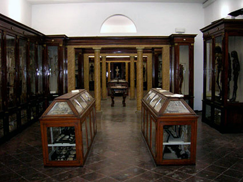 Aperto nel 1854 ed arricchito fino al 1926 per opera soprattutto dei direttori anatomici Paolo Gaddi e Giuseppe Sperino, il museo conta circa millecento pezzi esposti secondo il criterio dell'Anatomia descrittiva, ossia con finalità documentative dei diversi apparati umani. Tra i preparati naturali, singolari sono la raccolta di scheletri fetali in posizione eretta fissati in vari atteggiamenti (49 esemplari dal secondo all'ottavo mese di crescita) e tre mummie femminili realizzate nell'Ottocento. Notevoli appaiono anche due collezioni di crani: la raccolta etnografica-antropologica del Gaddi e l'interessante nucleo di crani classificati secondo la teoria del Lombroso, il fondatore dell'antropologia criminale. Degni di particolare attenzione sono poi le cere anatomiche eseguite nella seconda metà del XIX secolo dal ceroplasta Remigio Lei, in forza all'Università di Modena come modellatore dell'Istituto di Anatomia, e le settecentesche terrecotte dipinte, quasi tutte a grandezza naturale, che raffigurano le diverse fasi della gravidanza e del parto, opera del bolognese Giovan Battista Manfredini sotto la guida dell'anatomico Francesco Febbrari.Il museo trae origine da un nucleo iniziale, sorto sotto il regno di Francesco III d'Este e corrispondente all'attuale piano terra, con inclusione del loggiato, del Teatro anatomico e di alcuni locali contigui. L'inaugurazione del Teatro si ebbe nel 1775 per impegno del celebre anatomista Antonio Scarpa, docente di Anatomia nell'Ateneo modenese. Il progetto del Teatro fu steso dallo stesso Scarpa, che trasse ispirazione dal Teatro anatomico dell'Ateneo patavino, il più antico d'Italia. In questa prima fase non era ancora compreso il museo, tuttavia alcuni pezzi ivi conservati risalgono a quel periodo; si sa ad esempio che lo stesso Scarpa aveva invitato a Modena il ceroplasta Giovan Battista Manfredini, che precedentemente aveva eseguito una cinquantina di modelli di soggetto ostetrico in terracotta, per realizzare diversi preparati, oggi irreperibili. Dal momento della sua inaugurazione la fisionomia del museo, con le quattro sale intercomunicanti, le bacheche e le vetrine del tipico allestimento ottocentesco è rimasta invariata: a ciò si deve l'esposizione nelle bacheche della terza sala anche di preparati relativi ad animali, dovuta al fatto che per lungo tempo l'anatomia comparata è stata parte integrante della ricerca anatomica in genere.