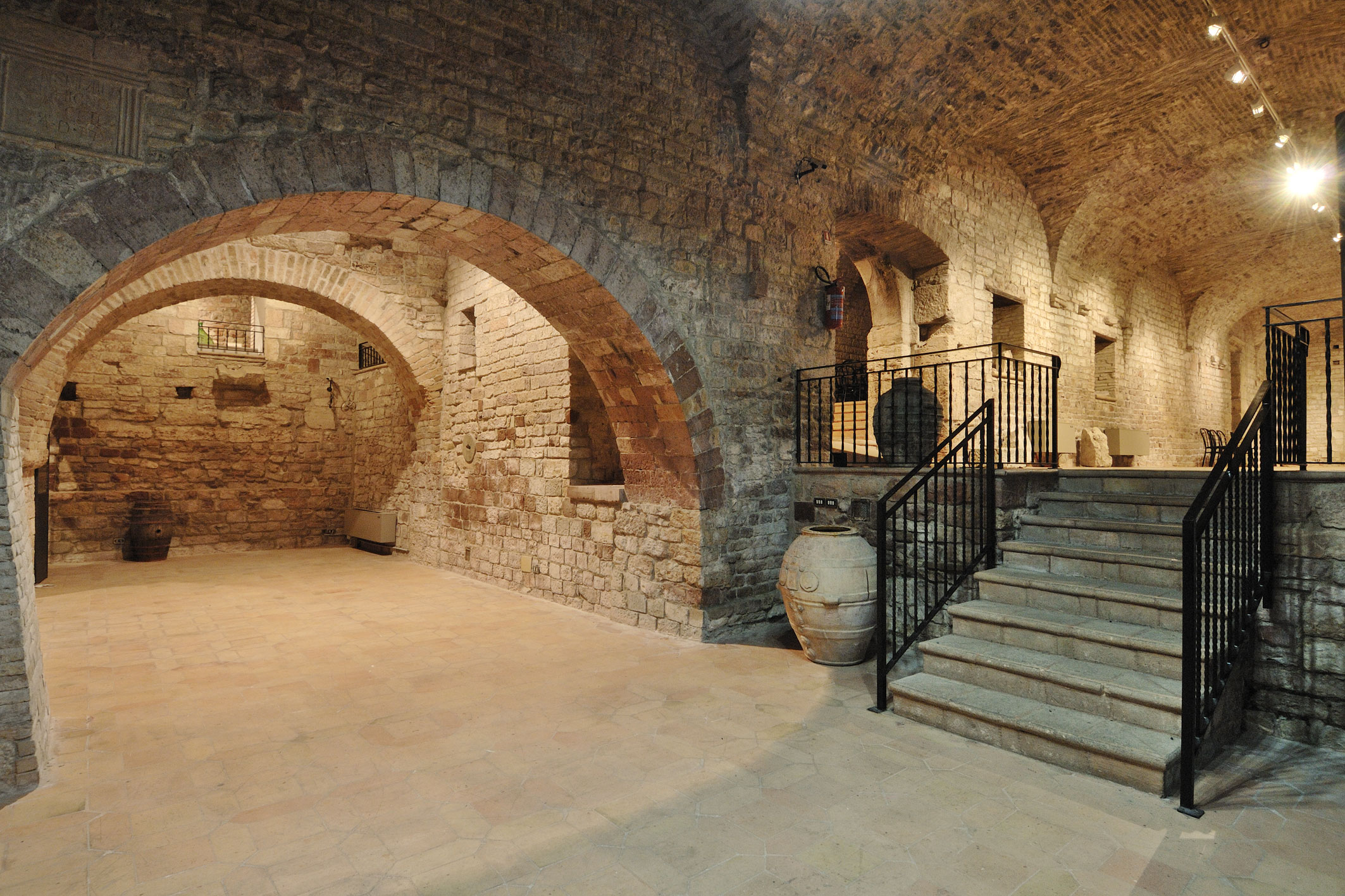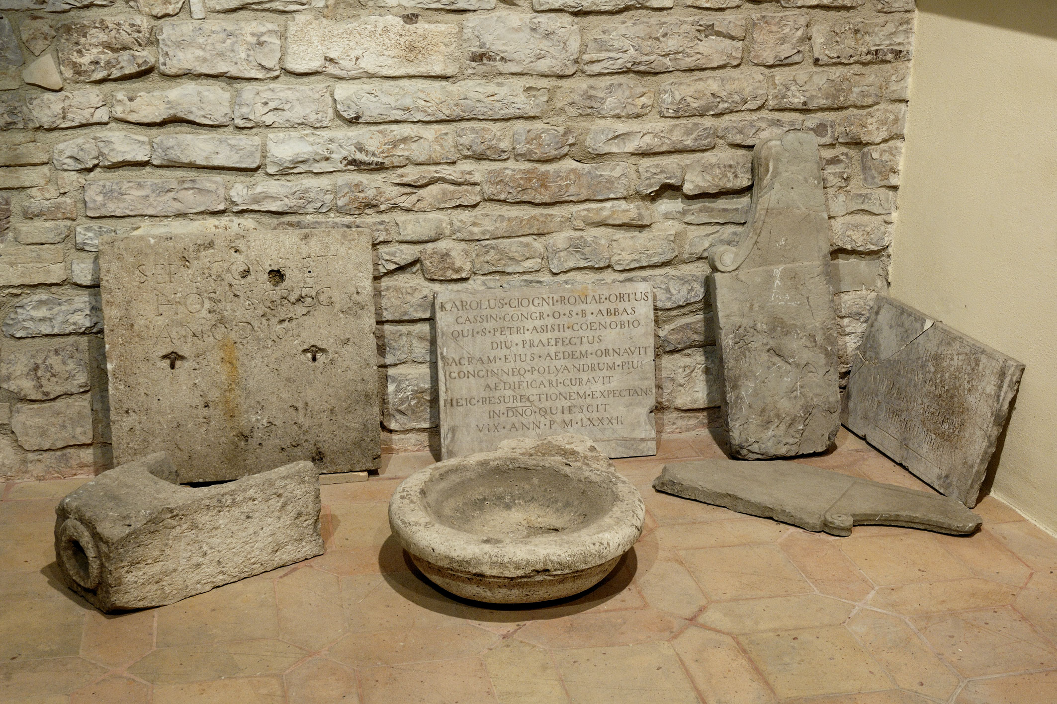 La chiesa di S. Pietro rappresenta un alto esempio di architettura romanica umbra. Il museo è collocato dal 2002 nei locali delle antiche cantine dell’abbazia benedettina di San Pietro, fondata nel X secolo su terreno allora extraurbano e dal XIV sec. ricompresa all’interno delle mura cittadine. Afferiscono al percorso di visita la cripta di san Vittorino, vescovo di Assisi nel III secolo d.C., il sacello delle reliquie, il sarcofago, la porta urbica delle mura romane, il pozzo dei martiri compagni di San Vittorino e il duecentesco passaggio sotterraneo che collegava l’abbazia all’ospedale dei Poveri costruito nel 1250.