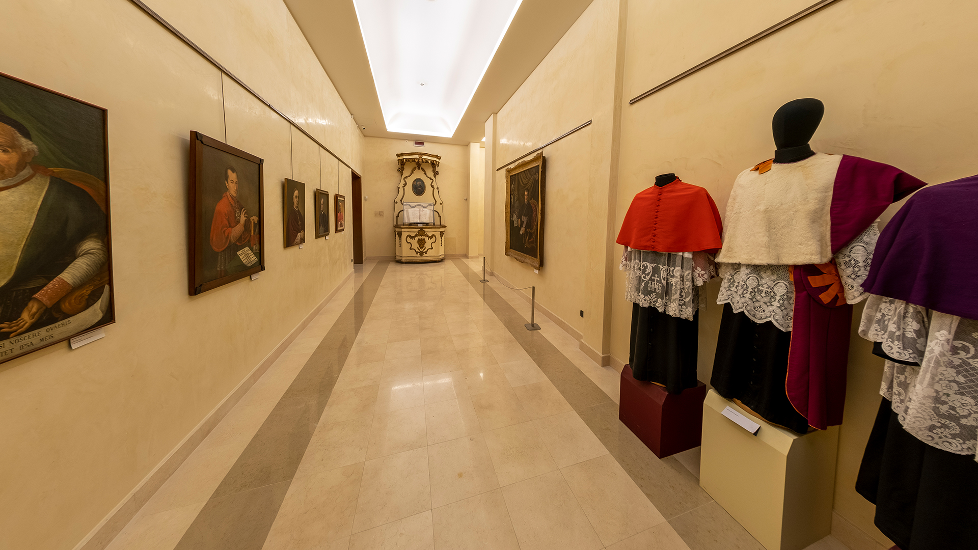 Il Museo è allestito all’interno degli eleganti ambienti dell’attuale Seminario Vescovile già collegio molfettese della Compagnia di Gesù, edificato a partire dal 1610. Furono, infatti, i Gesuiti ad avviare una importante attività culturale nella cittadina adriatica. Già negli anni ‘30 del 1800 Mons. Filippo Giudice Caracciolo dispose l’allestimento di alcune sale museali in questa sede, con la prima raccolta di materiale archeologico proveniente dal Pulo di Molfetta, appartenuta all’arciprete e letterato molfettese G. M. Giovene (1753-1837). In seguito, la collezione fu arricchita dai reperti provenienti dalle zone archeologiche di Terlizzi e Bisceglie, raccolti dall’arcidiacono Francesco Samarelli, e da donazioni di collezionisti privati (Cascarano - de Trizio). Dopo un periodo di stasi, si deve a Mons. Achille Salvucci (1935-1978) la sua riapertura e a Mons. Aldo Garzia l’istituzione del Museo-Pinacoteca nel 1980. Negli anni seguenti, a motivo dell’accrescimento del patrimonio museale, il Museo Diocesano ha avuto diverse ristrutturazioni fino all’attuale riordino voluto dal Vescovo Mons. Luigi Martella, che l’ha riconsegnato alla pubblica fruibilità il 18 giugno del 2009 e affidato a una cooperativa di giovani che ne custodiscono la gestione dal gennaio 2010.