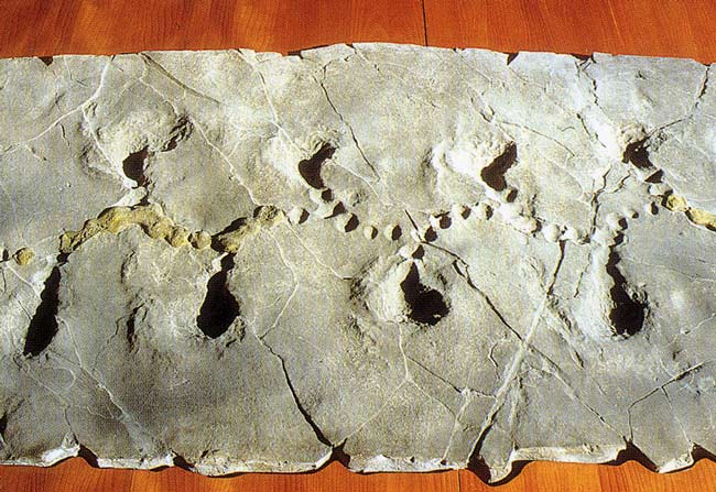 Ma l' aspetto piu' interessante ed intrigante e' rappresentato dalla presenza di "Ugo" (Accoriichnus Natans) un rettile adattato alla vita all' ambiente marino, vissuto probabilmente in eta' Medioliassica.