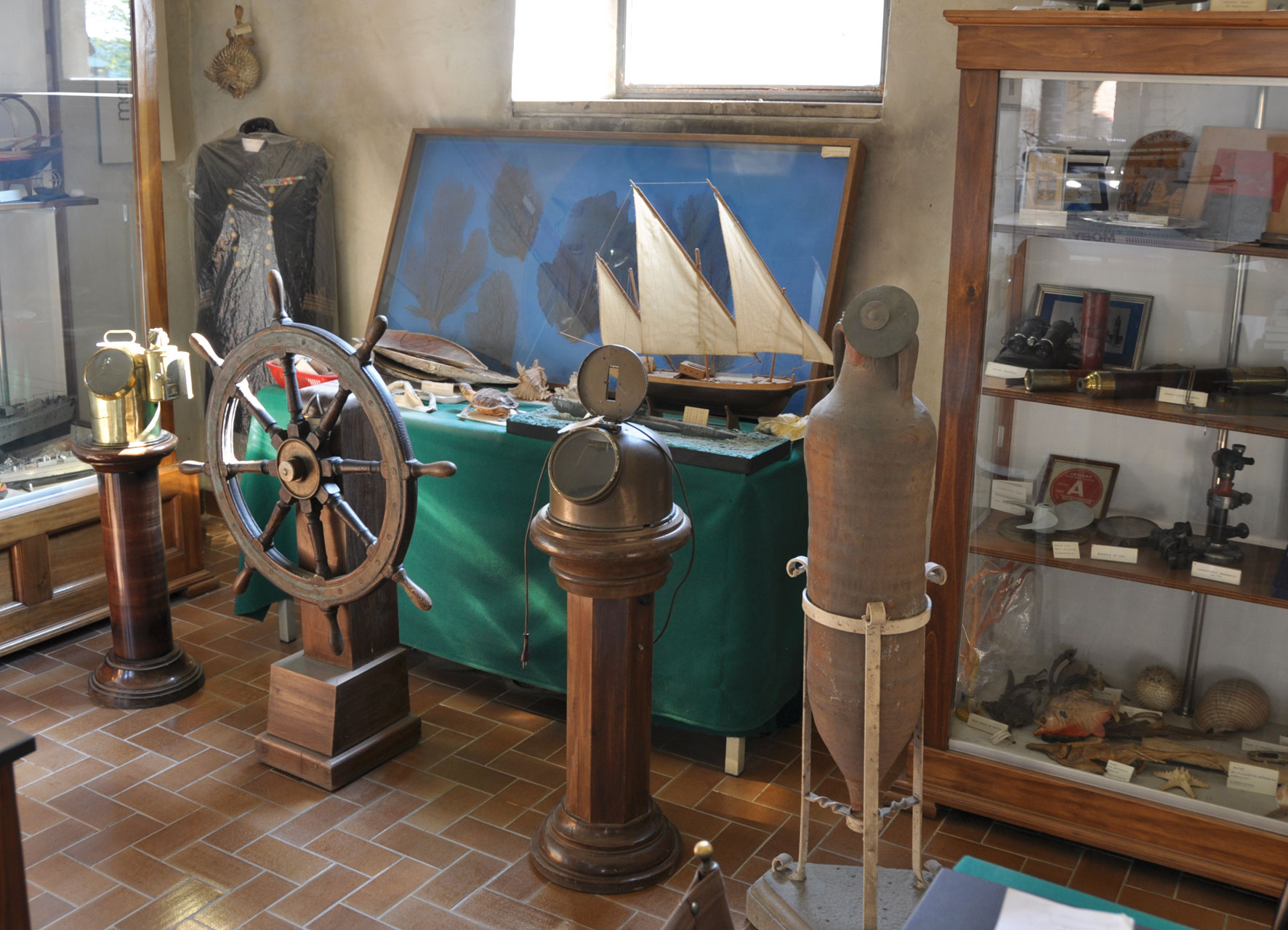 Esso si compone di riproduzioni in scala di velieri celebri, cimeli storici, strumenti nautici, bussole, cannocchiali, attrezzi navali, fossili marini, conchiglie rare, medaglie, e di una biblioteca del mare.
