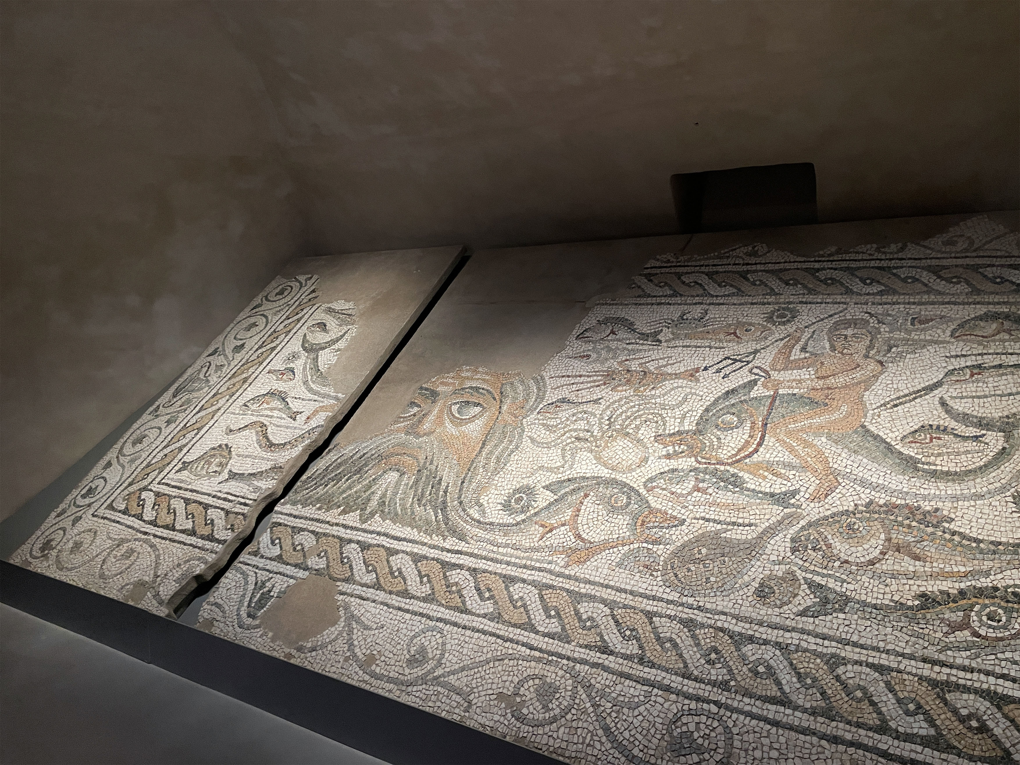 Mosaico di Oceano, tessere in marmo e pasta vitrea (fine III - inizio IV sec. a.C)