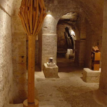 Gli spazi museali, infatti, coprono non solo le aree edificate del Palazzo, ma anche gli ampi ipogei scavati, dove la vasta collezione di opere d'arte viene rigenerata dalla forza degli ambienti rupestri. Il visitatore può quindi sperimentare un'integrazione ideale, di intenso impatto emotivo, tra gli ambienti secolari "cavati" dall'uomo e la scultura contemporanea.