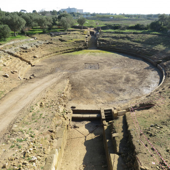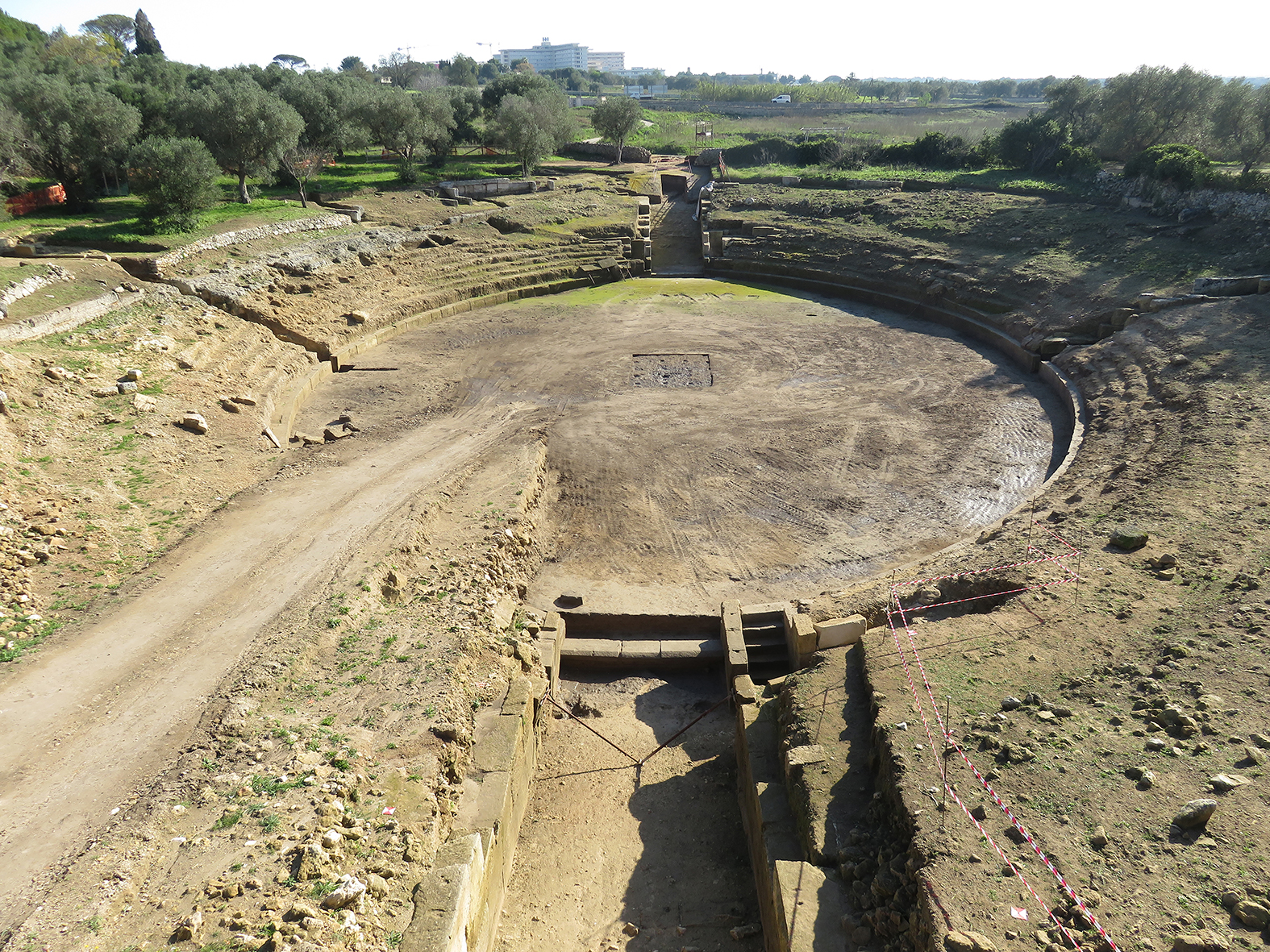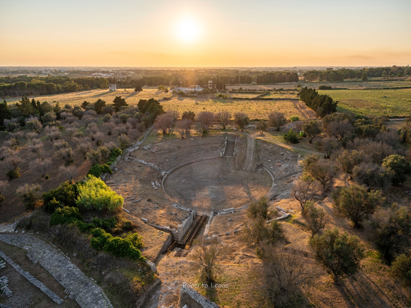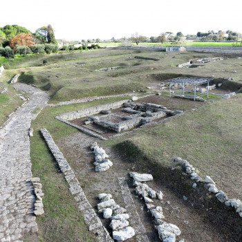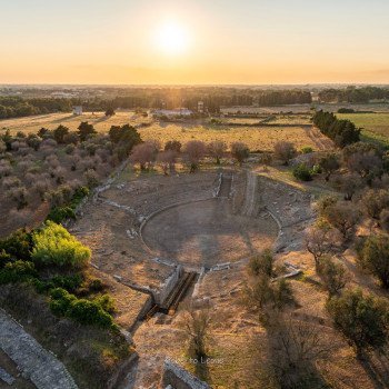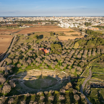 Al centro dell’insediamento, circondato da una cornice di ulivi secolari, si conserva, quasi nella sua interezza, l’anfiteatro costruito durante il regno di Traiano (98-117 d.C.).