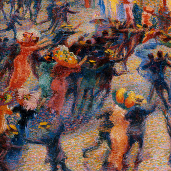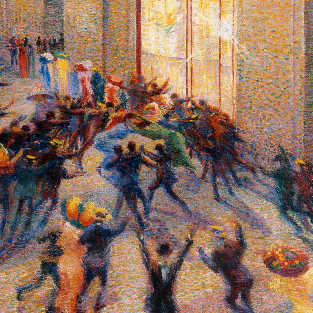 Dipinto simbolo della modernità che avanza nella società e nell’arte di inizio Novecento, la Rissa in galleria è realizzata da un giovane Umberto Boccioni, che stabilitosi a Milano dal 1907 subisce il fascino della vitalità della città in espansione e ancor più delle teorie futuriste di Filippo Tommaso Marinetti.