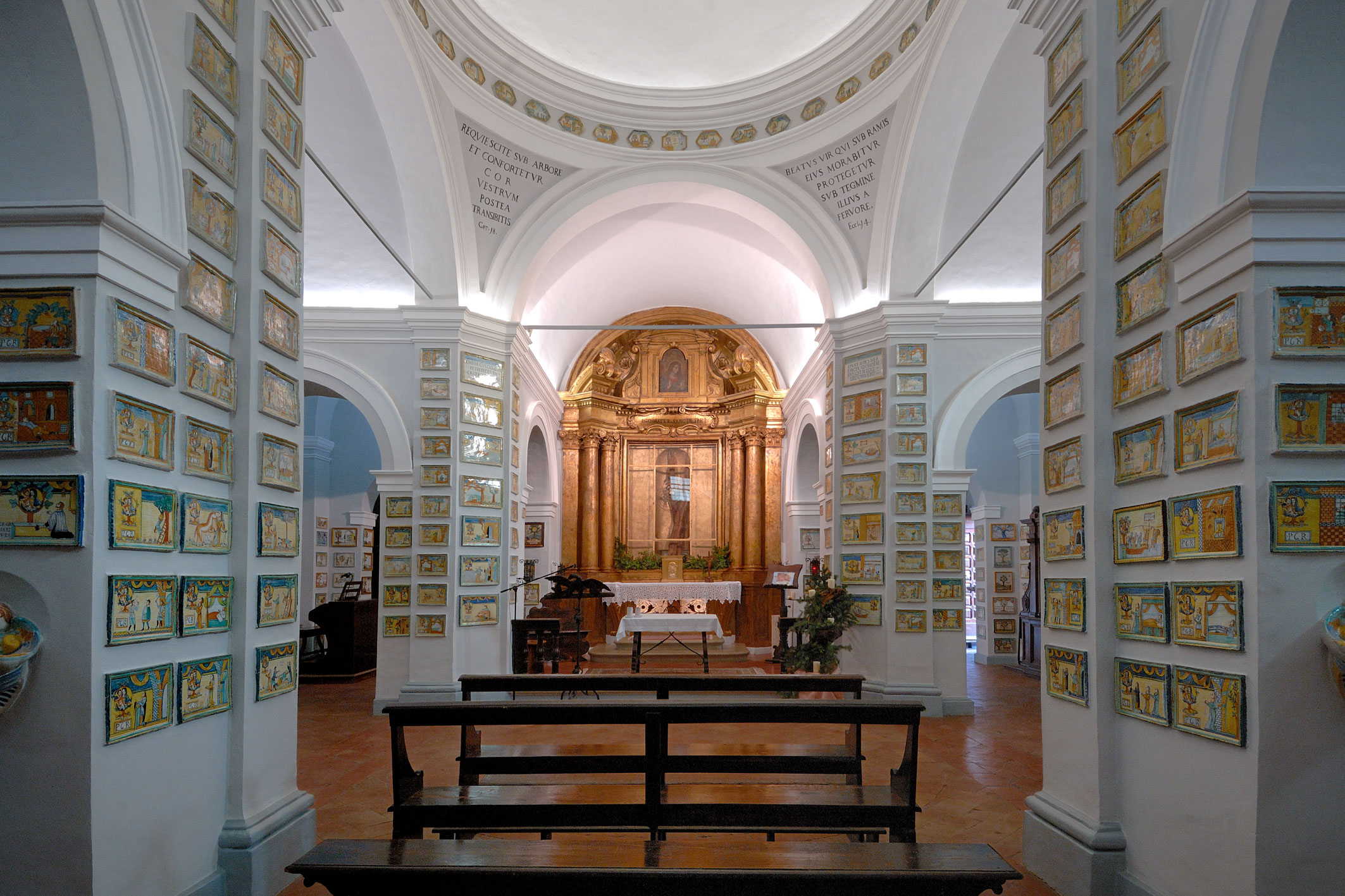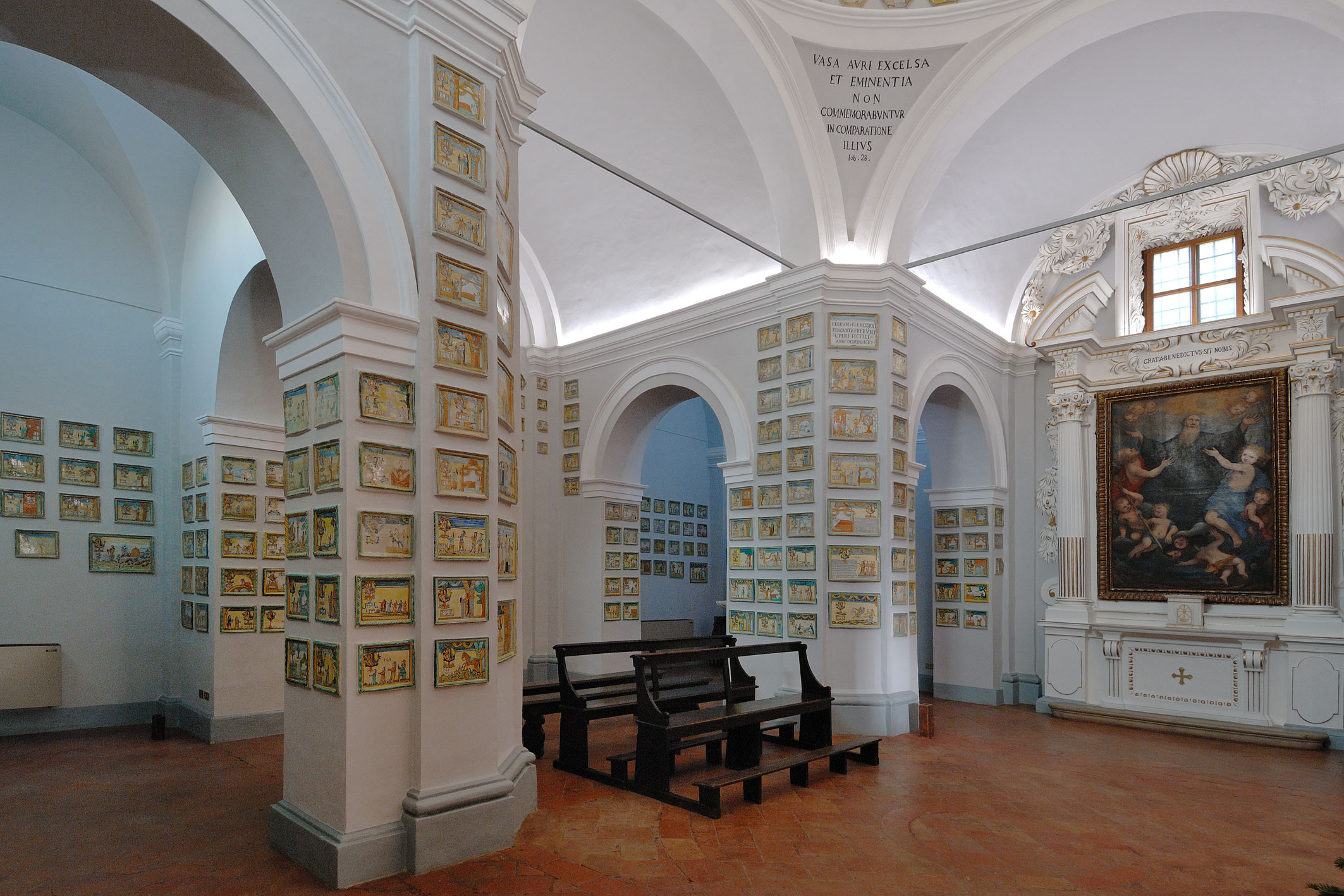Nell’arco di tre secoli si sono dunque qui raccolte oltre settecento mattonelle che costituiscono un significativo documento della religiosità e dei costumi locali, nonché dell’evoluzione tecnica e stilistica della maiolica derutese.