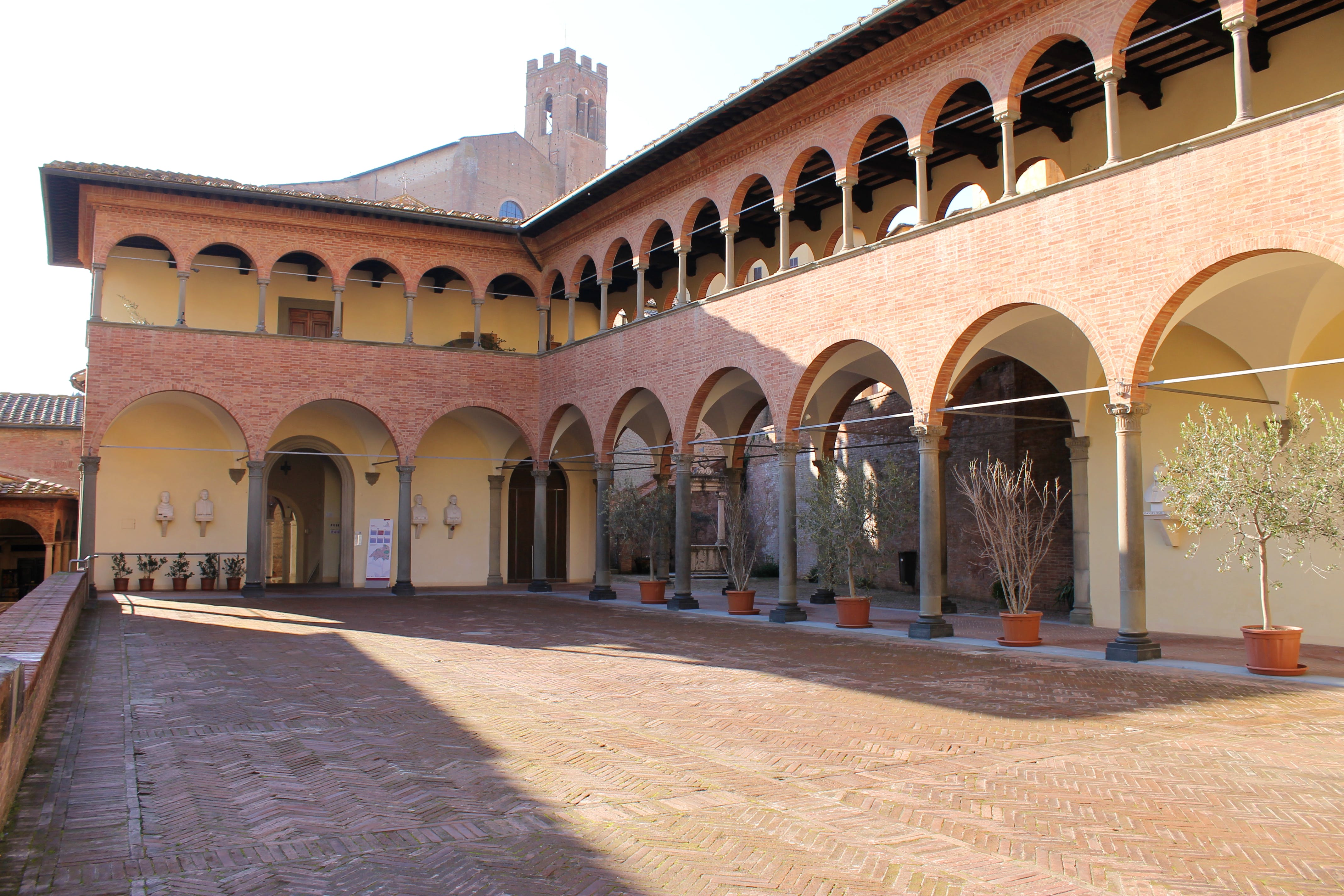 Il Santuario di Santa Caterina incorpora l'antica dimora dei Benincasa, casa natale di Santa Caterina. Il complesso si articola in vari portici, loggiati, chiese e oratori di varie epoche. Al complesso si accede dal Portico dei Comuni d'Italia voluto dall'arcivescovo di Siena Marco Toccabelli per festeggiare la proclamazione di Santa Caterina Patrona d'Italia da parte di Papa Pio XII nel 1939. seguno due loggiati dei quali il più antico fu eretto nel 1550 da Giovan Battista Pelori. Da un portale si accede alla seicentesca chiesa che custodisce il Crocifisso dal quale Santa Caterina ricevette le stimmate. Nella chiesa è conservata anche una lampada votiva in bronzo voluta della madri dei soldati caduti nella seconda guerra mondiale che viene alimentata ad olio afferto ogni anno da uno dei comuni italiani o da un'associazione di comuni.