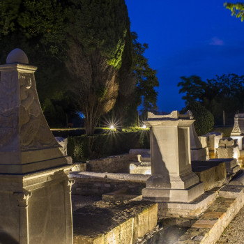 Grazie al loro eccezionale stato di conservazione, è possibile comprendere com’era strutturato un tratto di necropoli romana nei primi secoli dell’Impero: le aree sepolcrali erano divise in lotti di diverse dimensioni, affiancati e occupati in momenti diversi, con un muro di fondo continuo che rende probabile una loro pianificazione preventiva. Dal punto di vista architettonico, si notano le ricche decorazioni delle balaustre dei recinti (in un caso a pilastrini con rilievi vegetali) e in particolare i fastosi monumenti funerari (riproduzioni di originali conservati al Museo Archeologico Nazionale della città) collocati presso la fronte del recinto o al centro dell’area, commissionati dal proprietario ancora in vita perché mostrassero al meglio la sua posizione socio-economica.