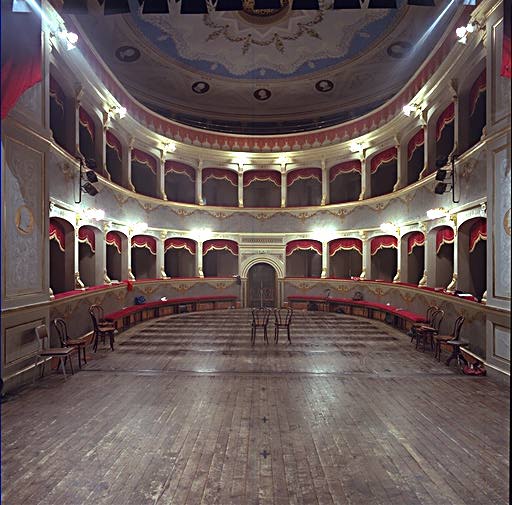 A metà dell'Ottocento esisteva ancora in questo centro collinare dell'entroterra cesenate un vecchio teatro. Pare si trattasse di un salone sito in uno stabile di proprietà comunale che dava sull'attuale piazza Malatestiana (all'epoca detta dei Capuccini), nel centro fisico e sociale del borgo antico.