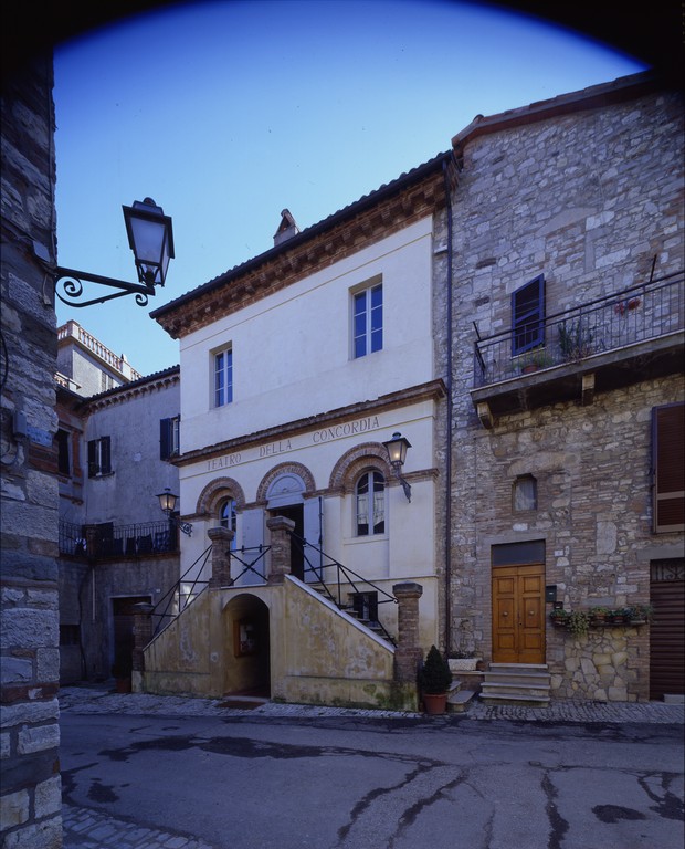 Il teatro della Concordia è situato nel cuore dell’antico centro di Montecastello di Vibio, cittadina che sorge sul versante destro della Valle del Tevere, poco distante da Todi.