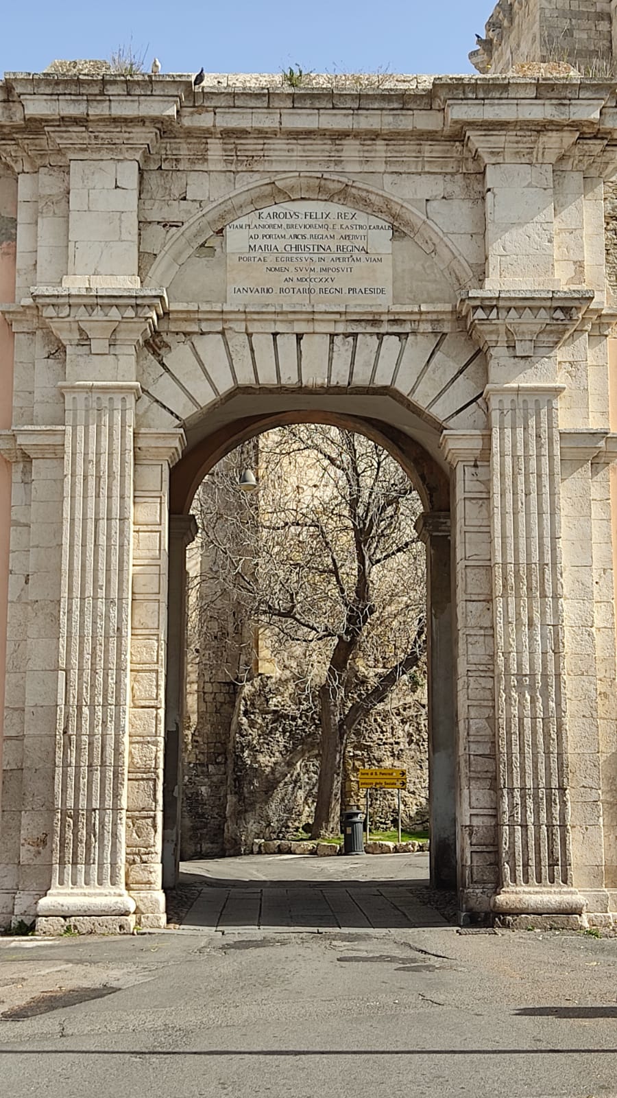 Porta Cristina deve il suo nome a Maria Cristina di Borbone, moglie del re Carlo Felice. Fu realizzata in stile neoclassico, utilizzando come materiale da costruzione il calcare delle cave di Bonaria.