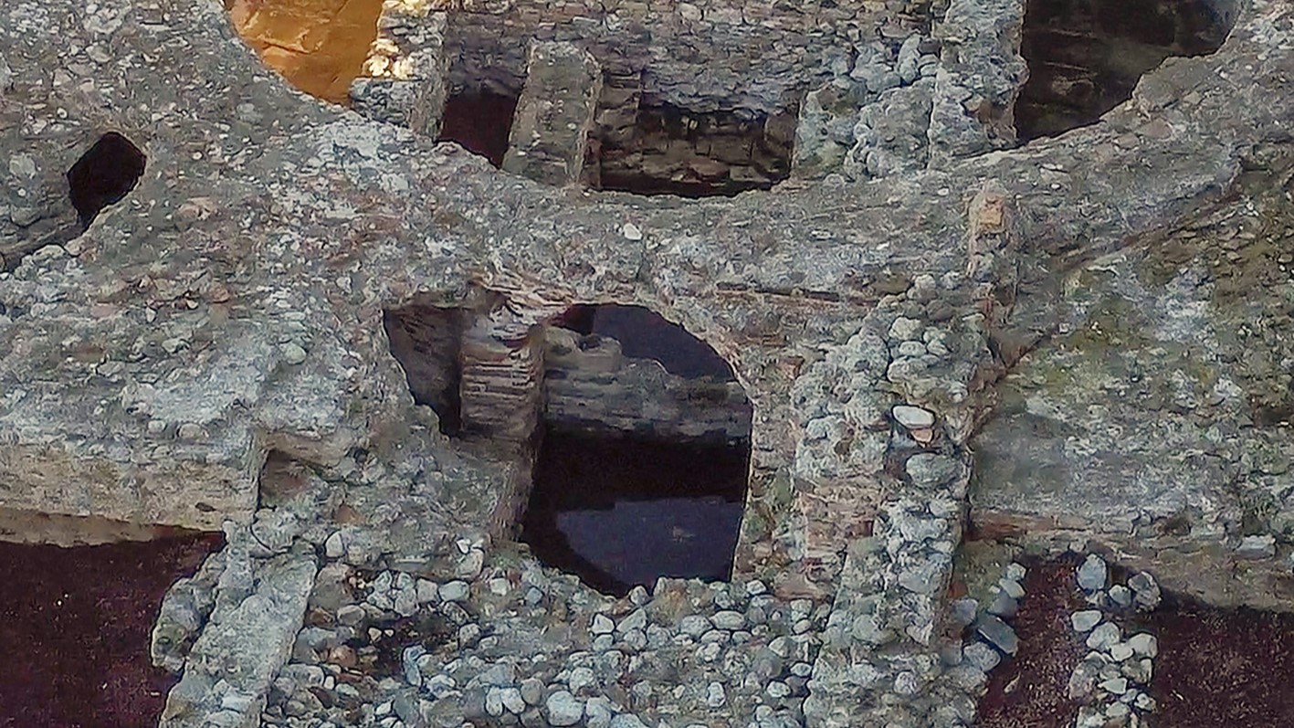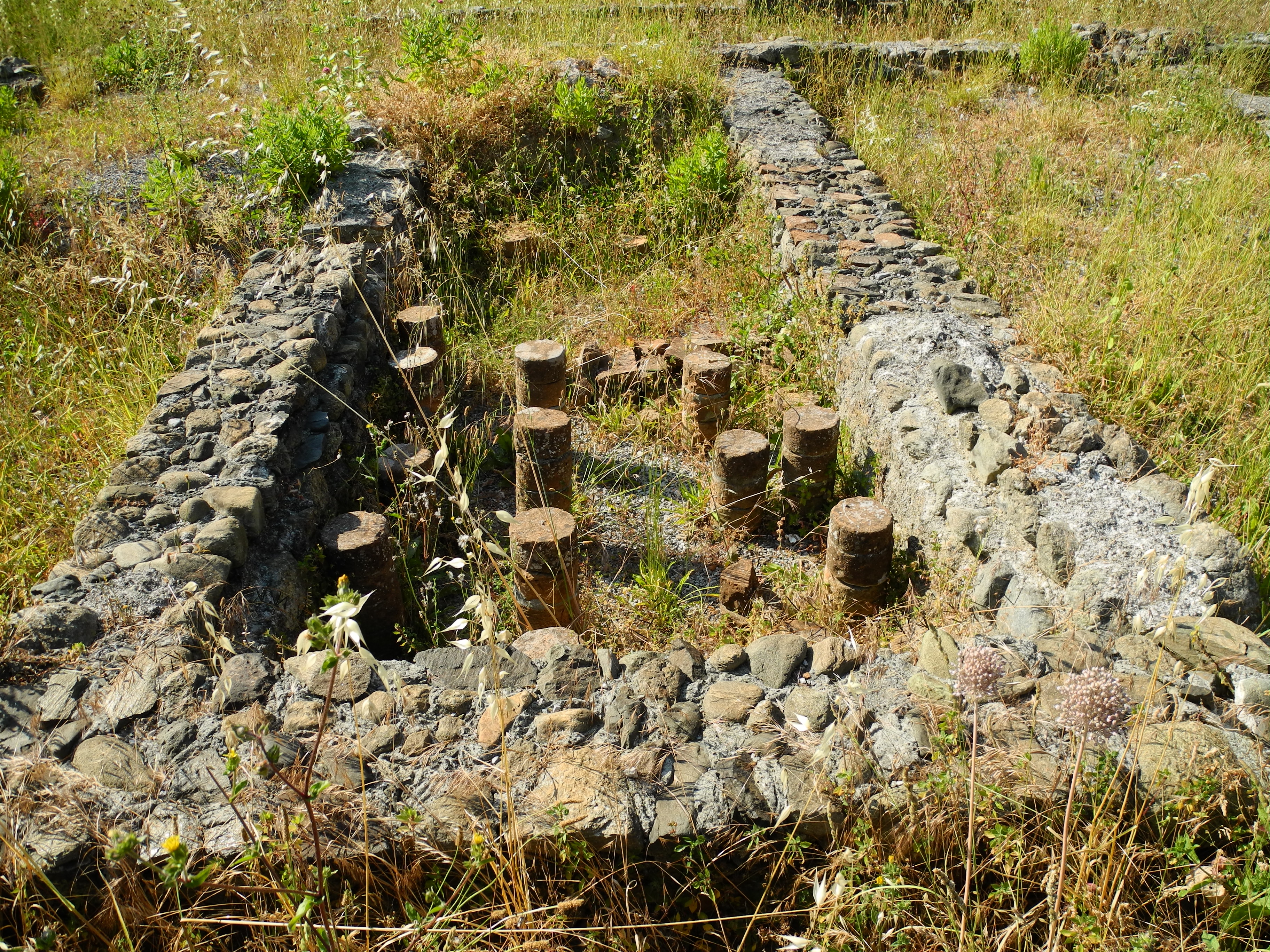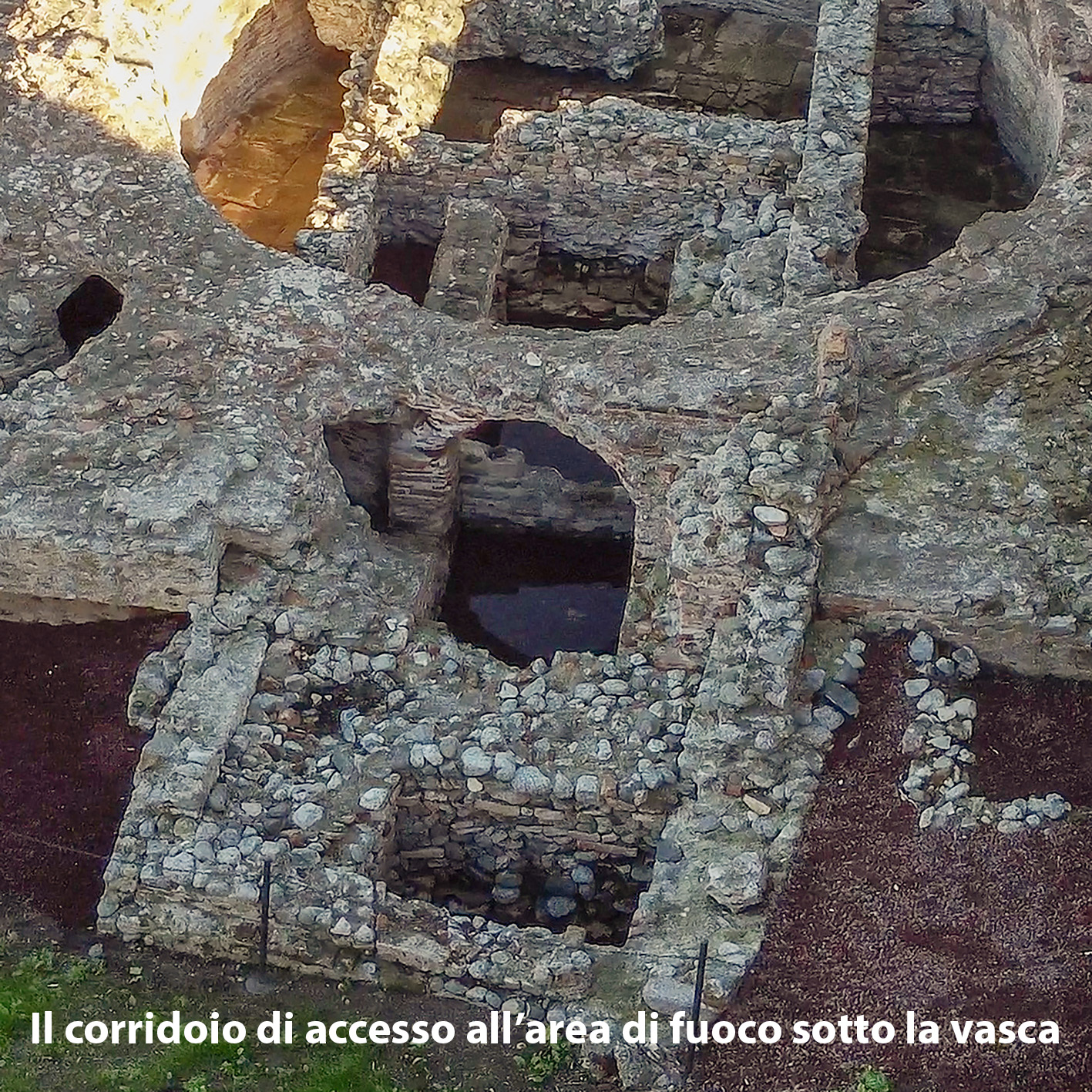 Il settore termale collegato alla parte abitativa comprende un grande edificio quadrangolare con al centro una piscina a pianta circolare e, verso sud, una vasca o cisterna rivestita con malta idraulica. In una serie di ambienti collegati si riconoscono vani di servizio connessi alle attivita termali.