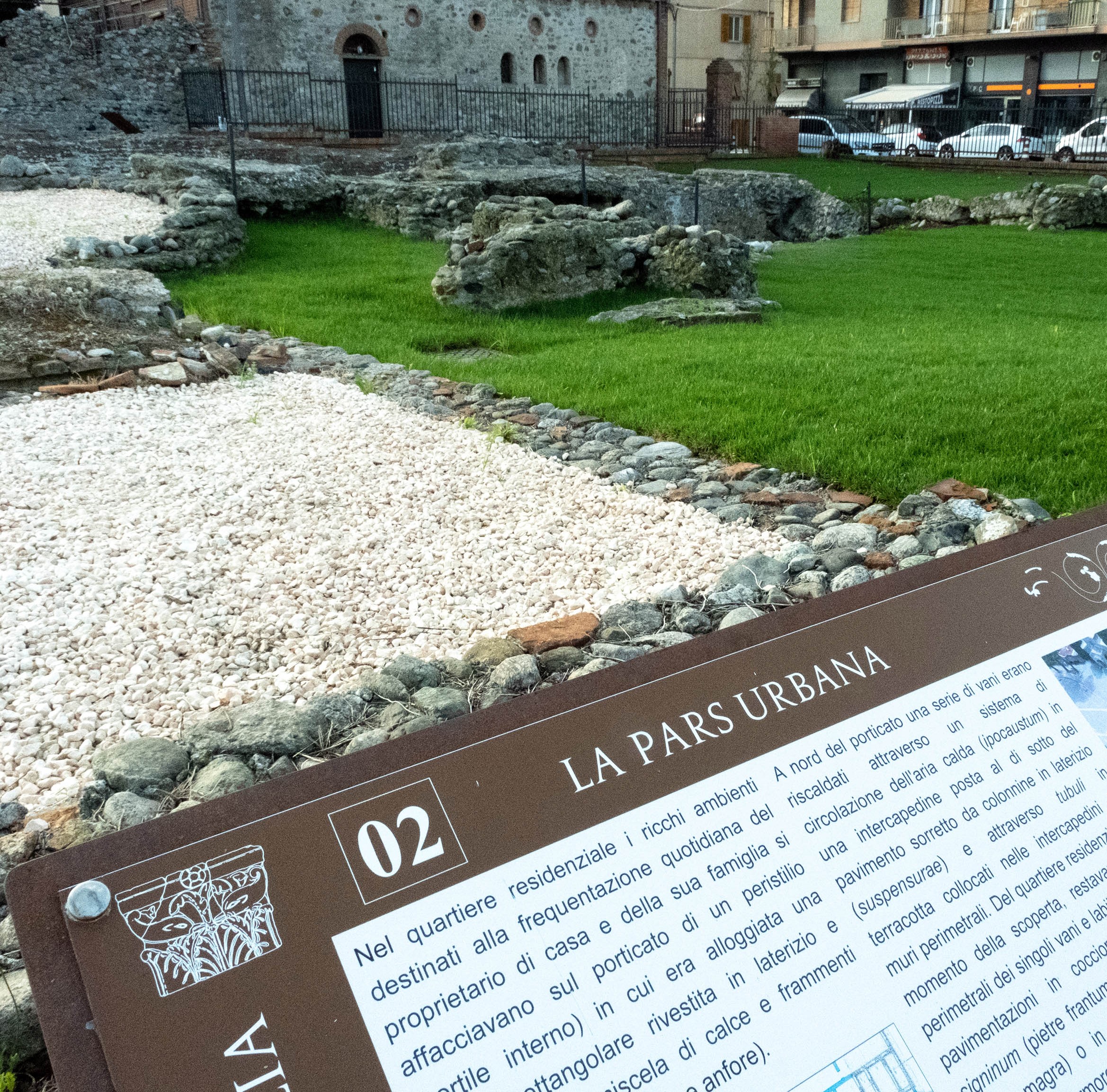 Parte del nucleo abitativo e della zona termale è attualmente visibile nell'area archeologica compresa nel vasto piazzale antistante la stazione ferroviaria; un tratto del settore rustico è conservato sotto il porticato a fianco della stazione stessa, mentre i resti murari esistenti sotto la piazza sono resi leggibili grazie al tracciato planimetrico, riportato mediante lastre di travertino sulla pavimentazione moderna.