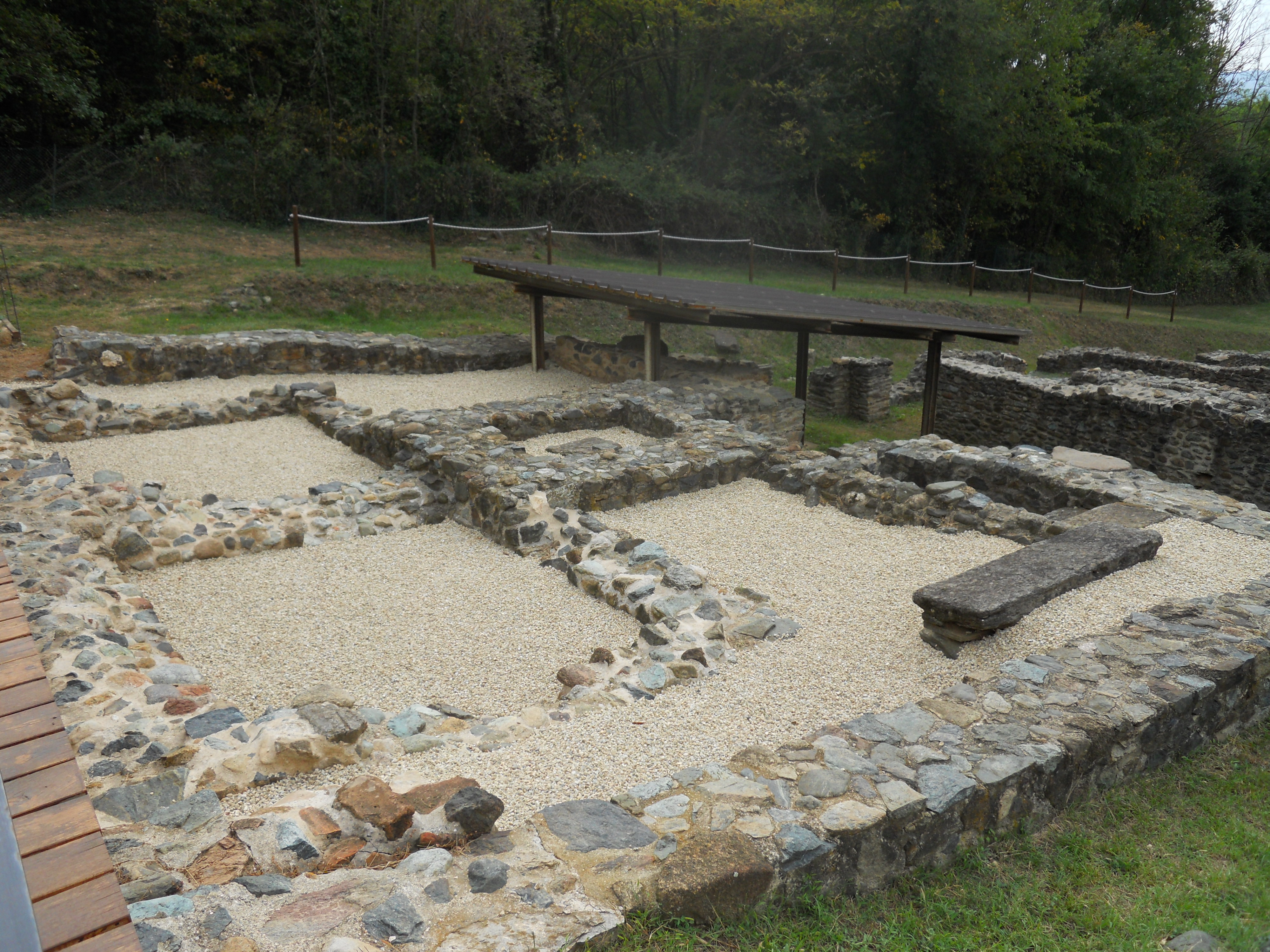 Gli scavi archeologici, condotti a partire dal 1979 prima dall’Università di Torino, poi dalla Soprintendenza per i Beni Archeologici del Piemonte, hanno consentito di mettere in luce un vasto complesso esteso su una superficie di circa 3000 mq, incentrato su una grande sostruzione verso valle, che sostiene un cortile centrale porticato, circondato da ambienti su tre lati. Ciò che rimane è il piano terreno di un edificio che doveva estendersi anche su un piano superiore, del quale restano solo elementi crollati dopo l'abbandono della struttura, quali intonaci dipinti e frammenti di pavimentazione. Il complesso era dunque articolato su più livelli, con spazi abitativi alternati a cortili e zone a cielo aperto, che assecondavano il naturale declivio del terreno.